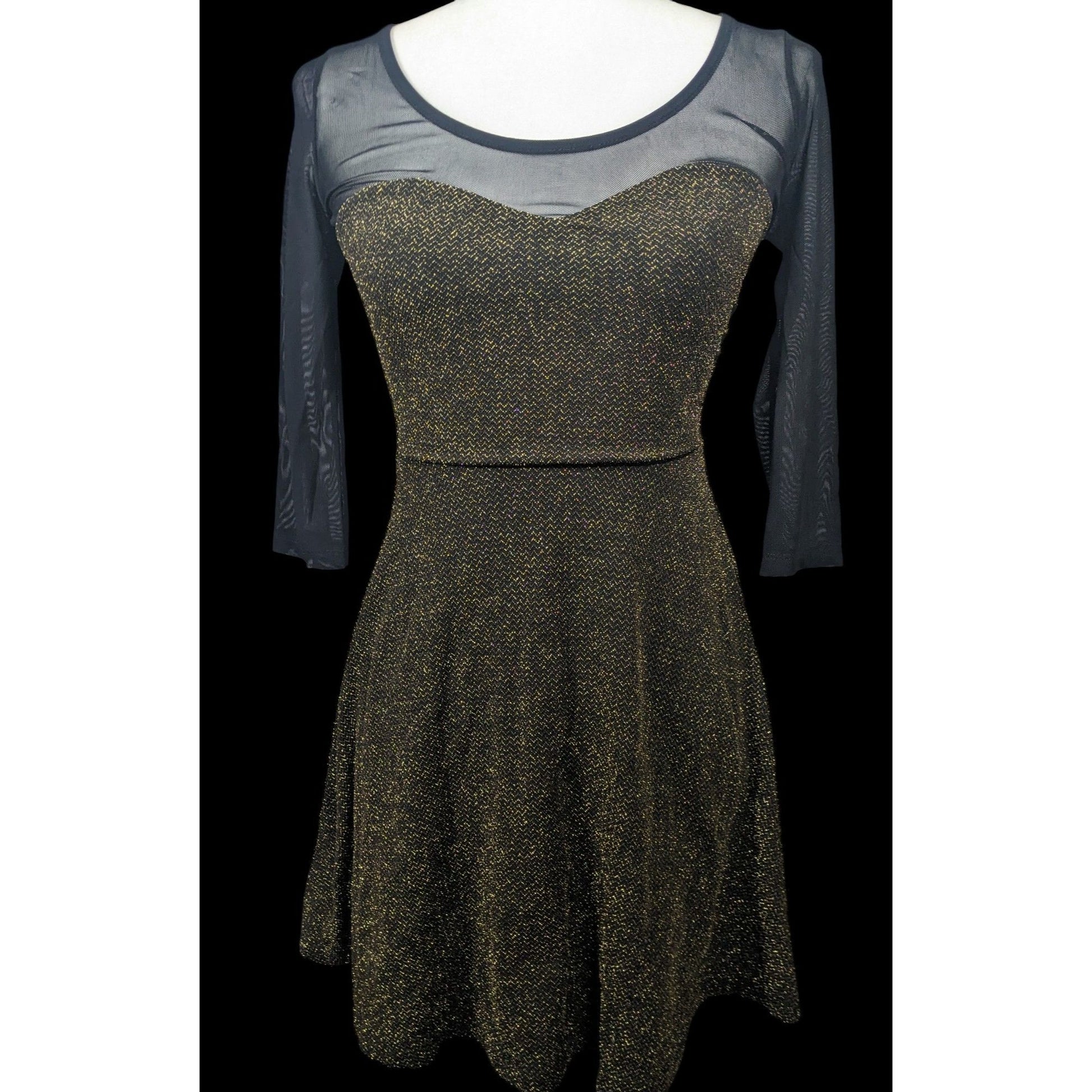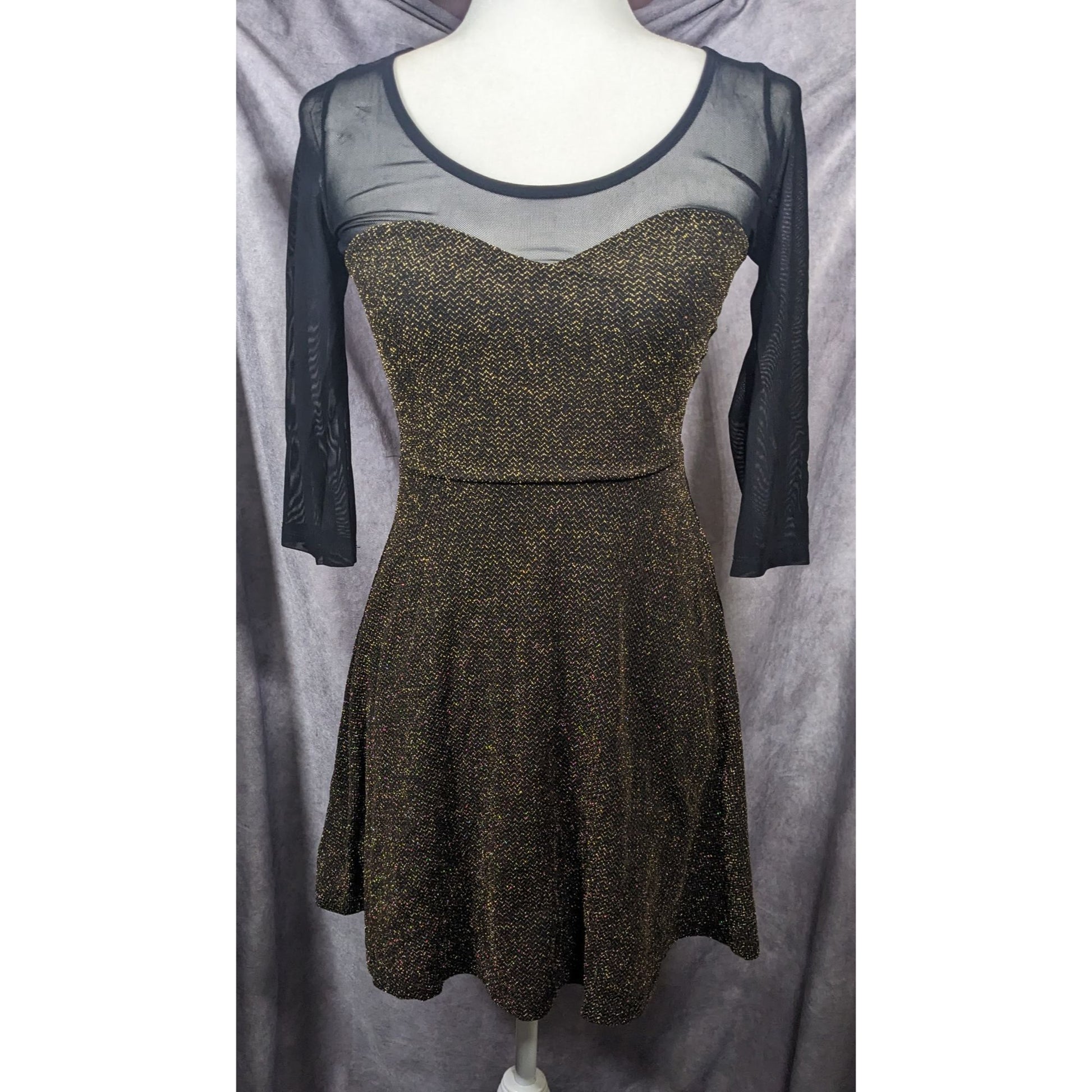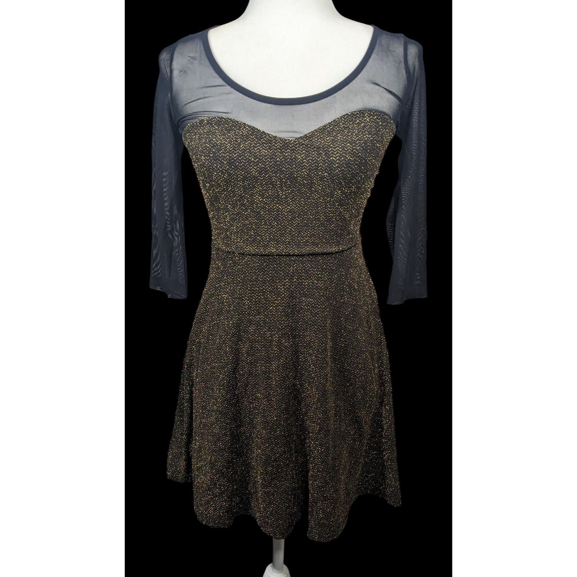 Material Girl Gothic Glam 80s Style Black And Gold Mesh Top Dress Size Small