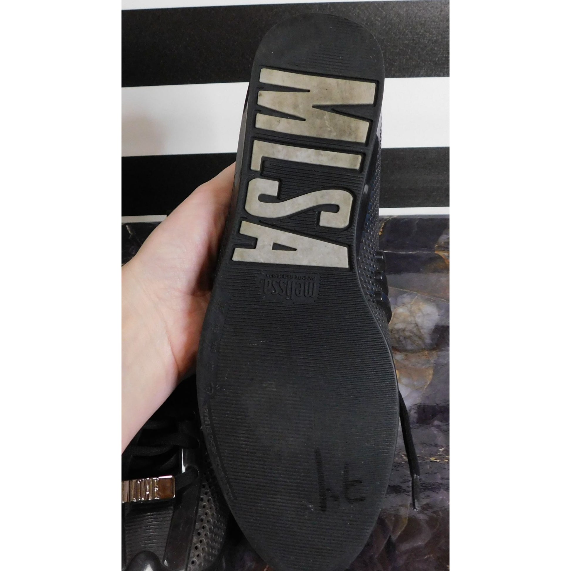 Melissa "Love System" Black Perforated Lace-Up Shoes With Metallic Details Womens Size 8