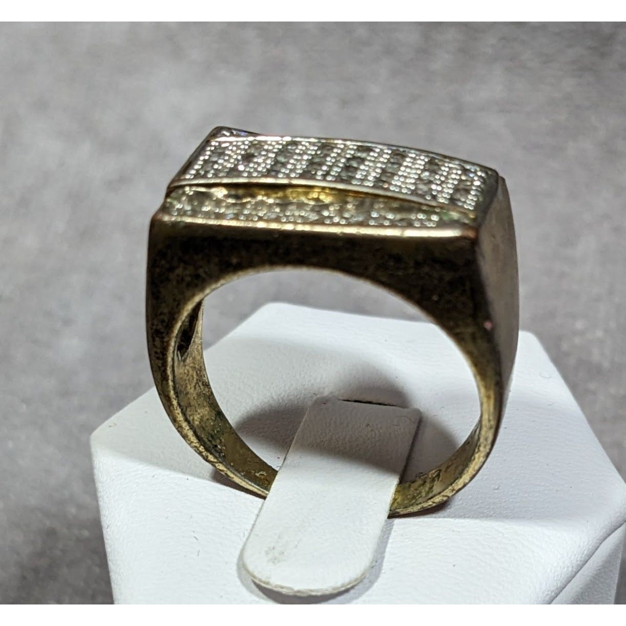 Men's Rectangular 14K Gold Plated Diamond Ring Size 11