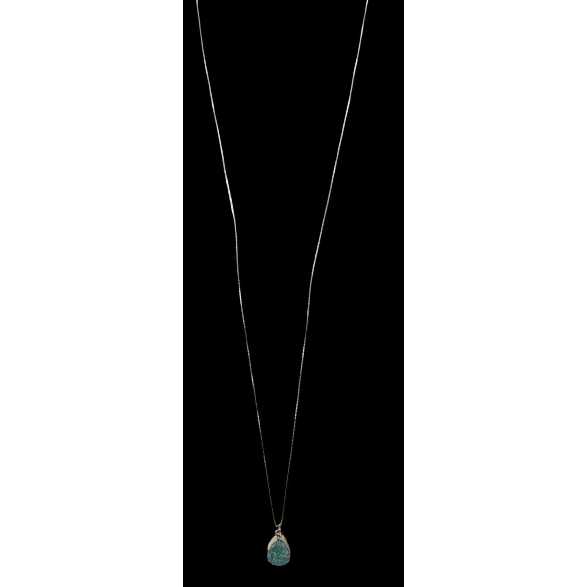 Mermaidcore Aqua Blue Druzy Teardrop Pendant On Silver Tone Chain