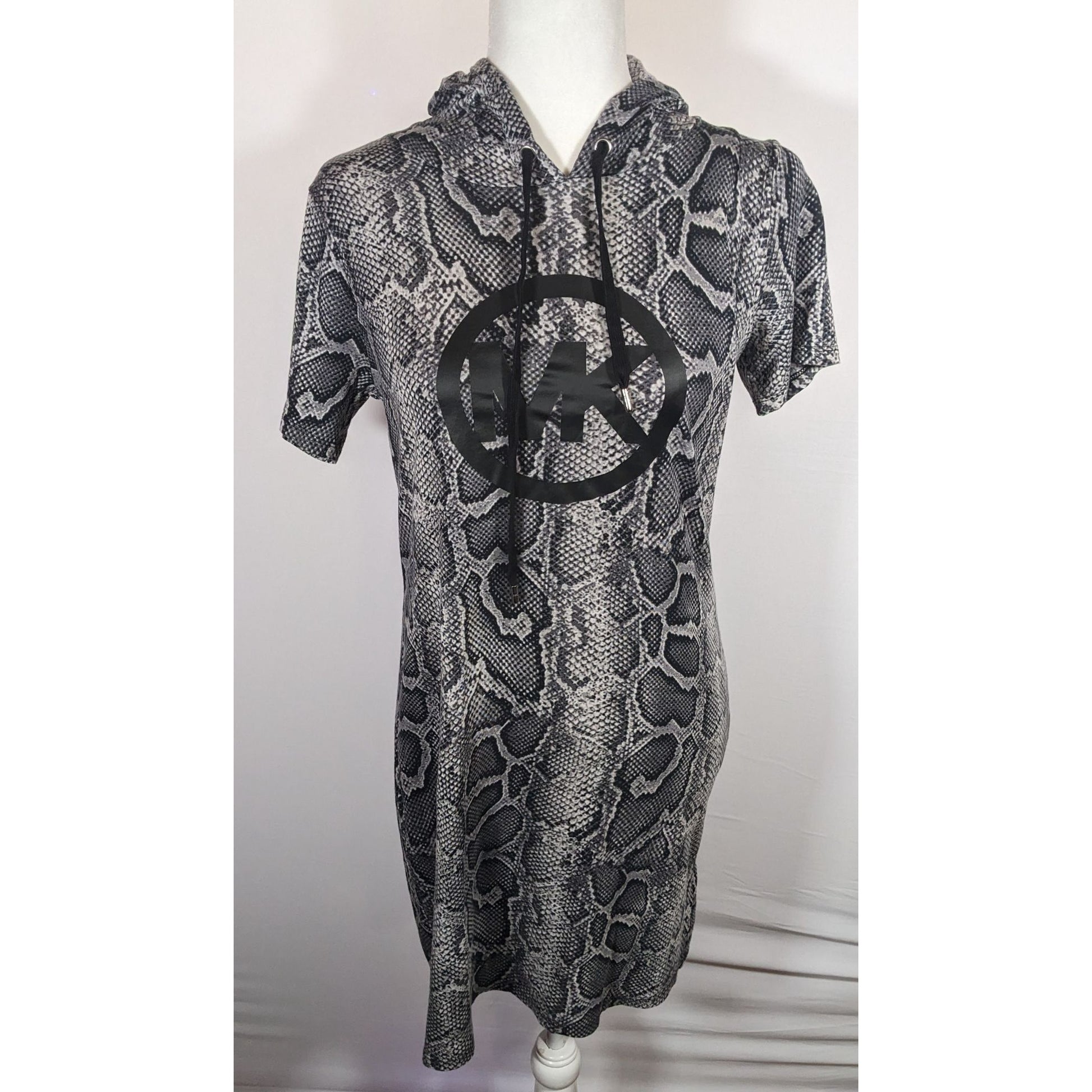 Elevate your loungewear with this chic Michael Kors Snake Skin Print Hooded Lounge Dress, offering style and comfort for any casual occasion.