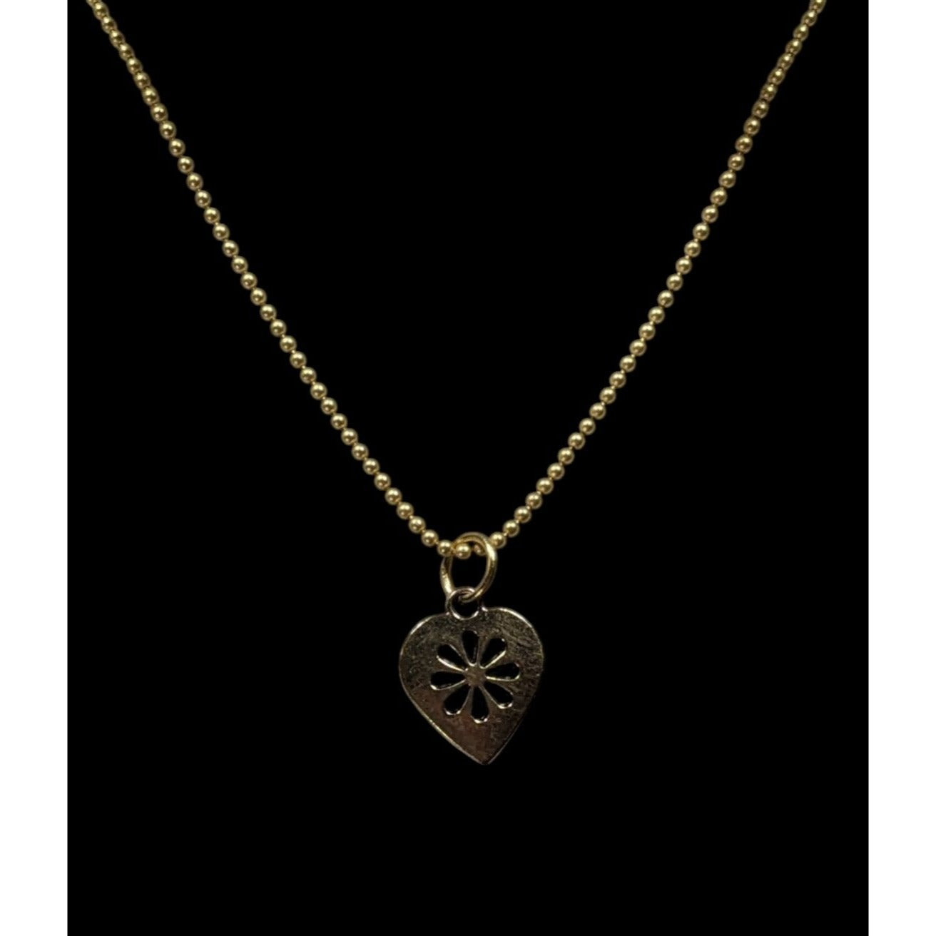 Minimalist Coquette Heart Pendant Necklace Gold Tone With Floral Cutout