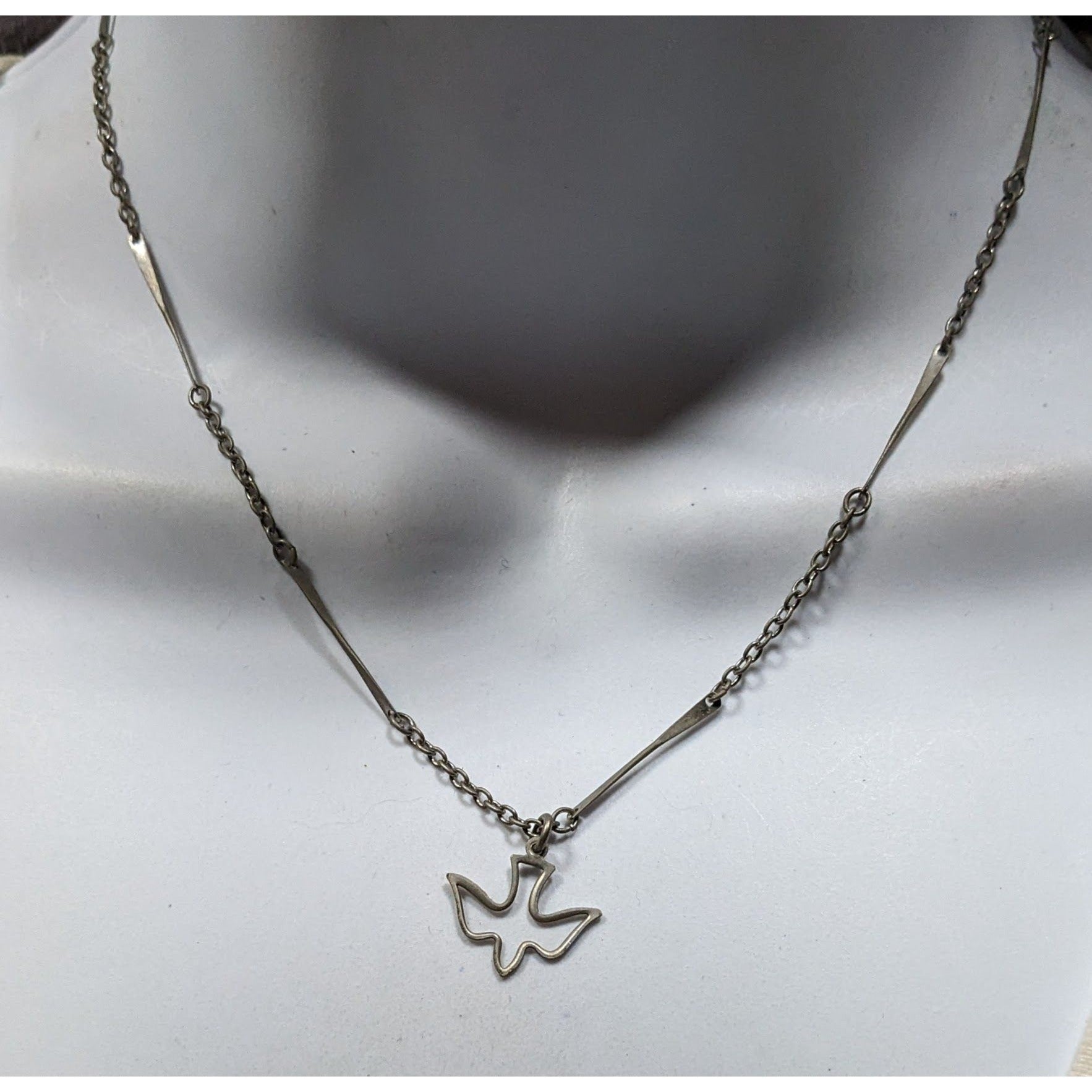 Minimalist Dove Silver Tone Necklace With Unique Bar Chain Design