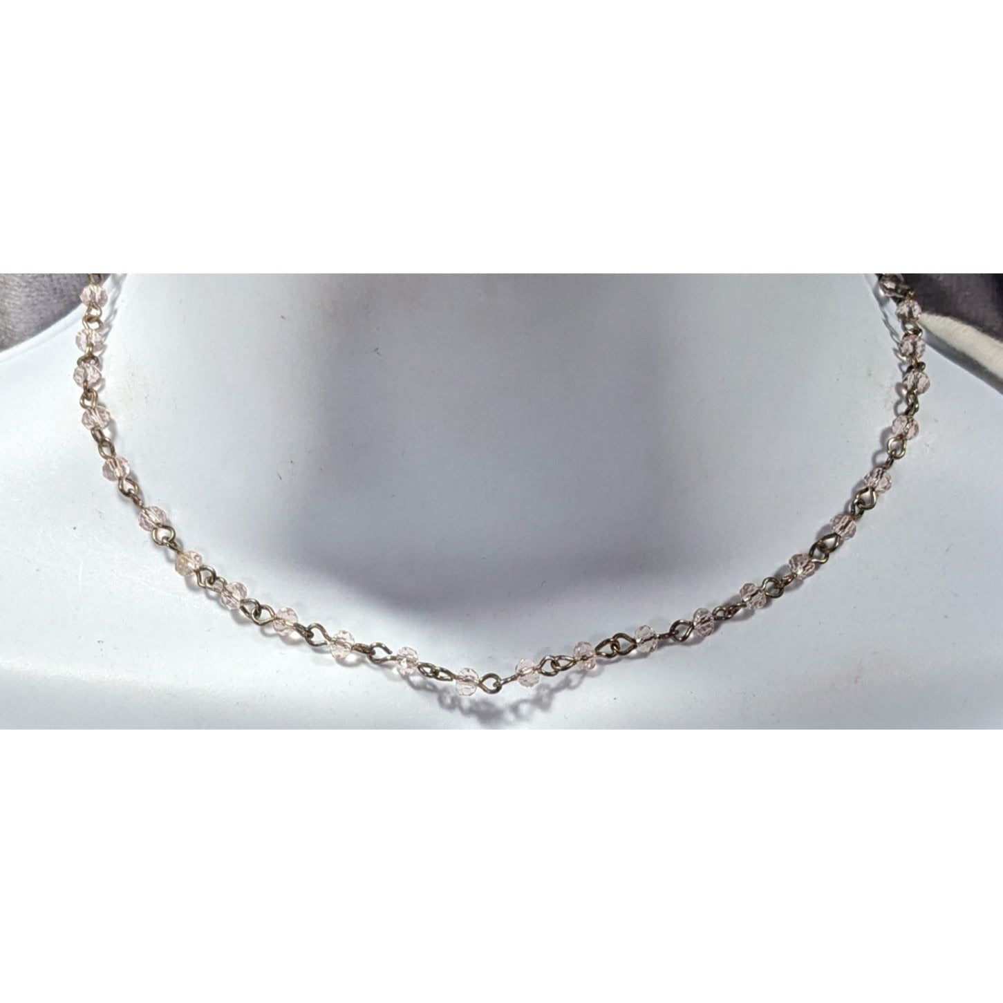 This elegant minimalist necklace features pink glass beads strung on a delicate chain, perfect for adding a touch of color to any outfit. Ideal for casual or formal wear, making it a versatile accessory.