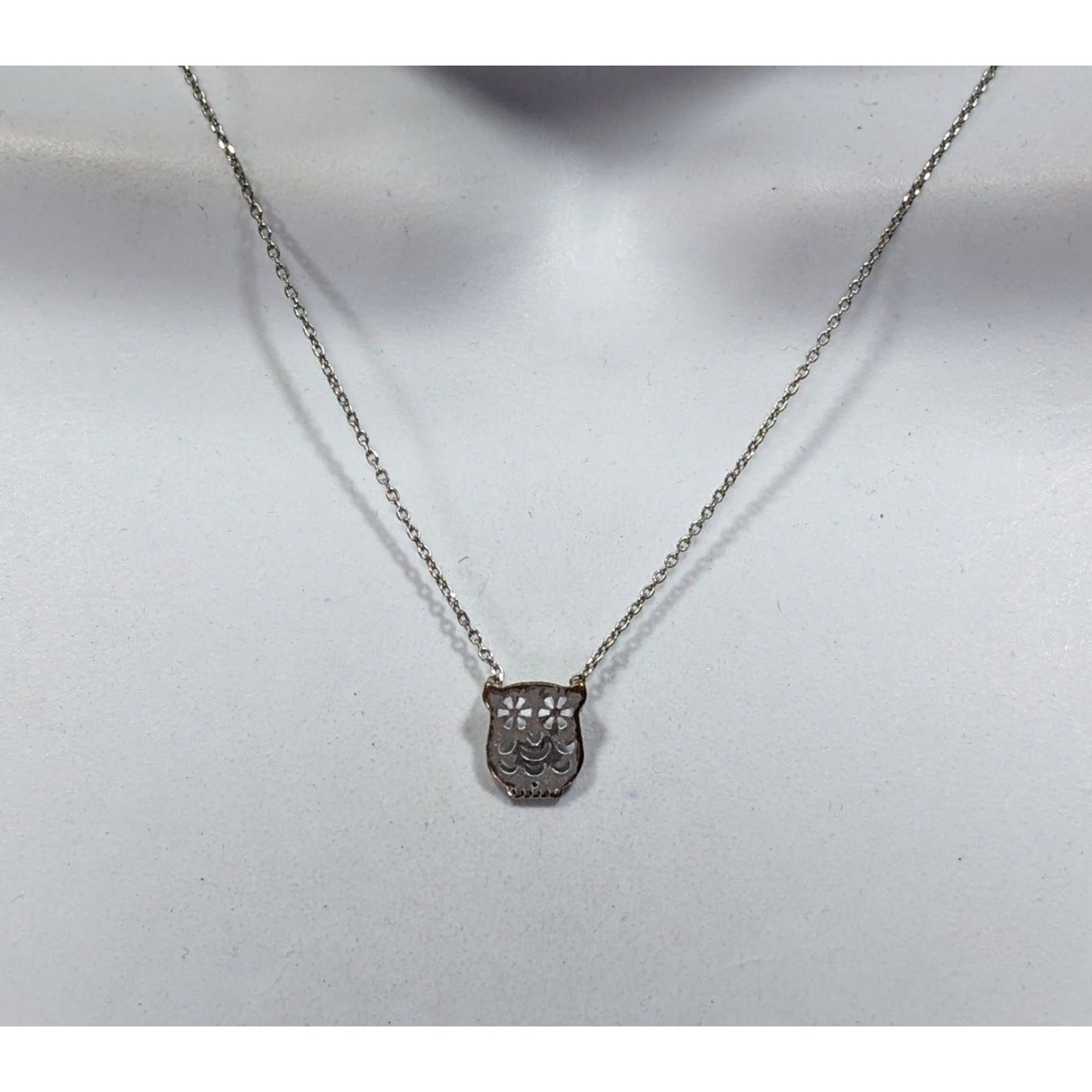 This minimalist quirky owl pendant necklace in silver tone adds a touch of whimsy to any outfit. Its unique design makes it a perfect accessory for both casual and formal occasions.