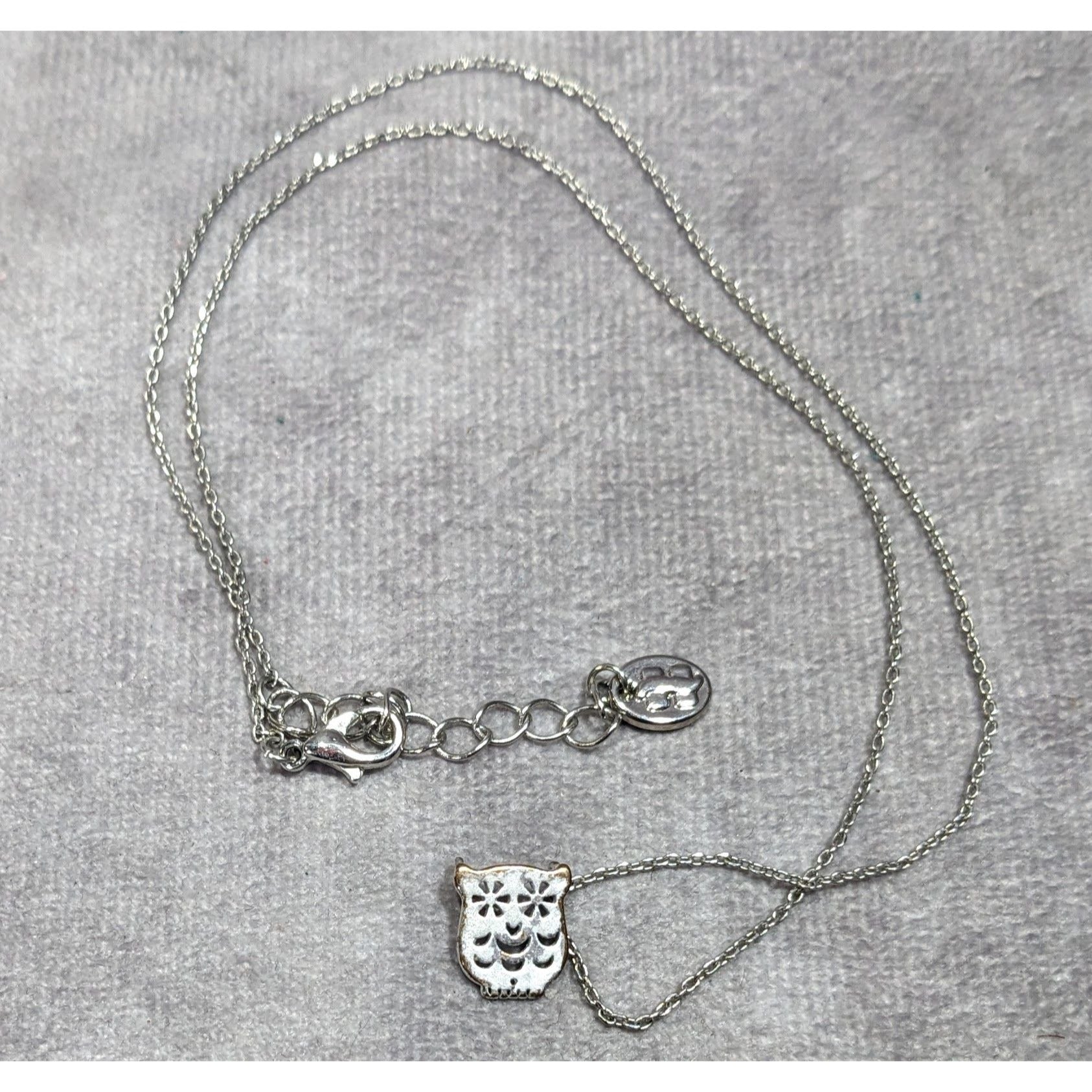 Minimalist Quirky Owl Pendant Silver Tone Necklace