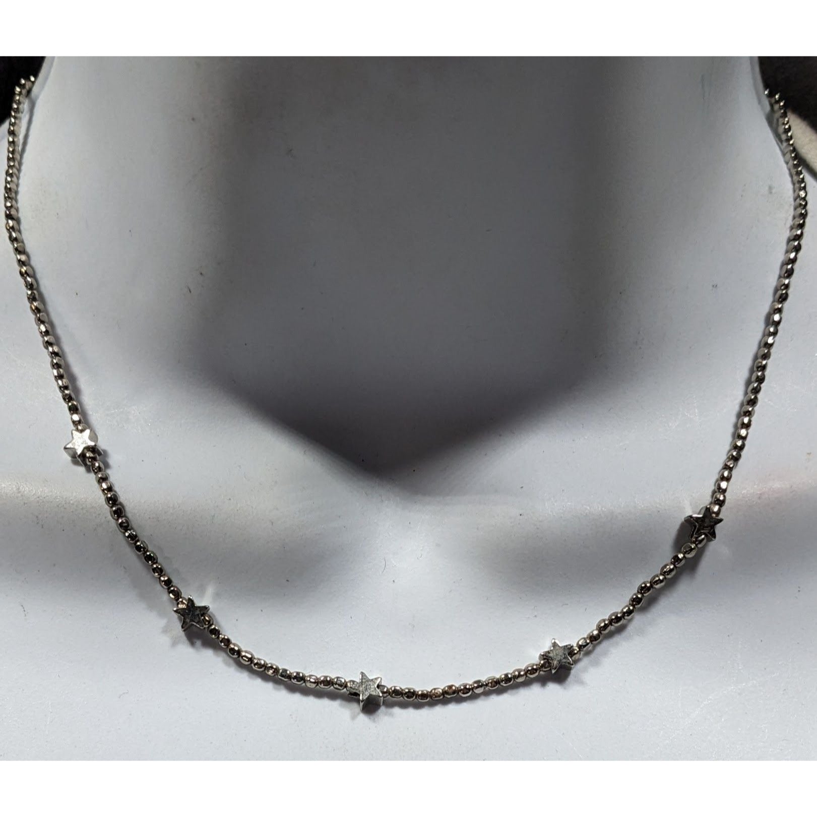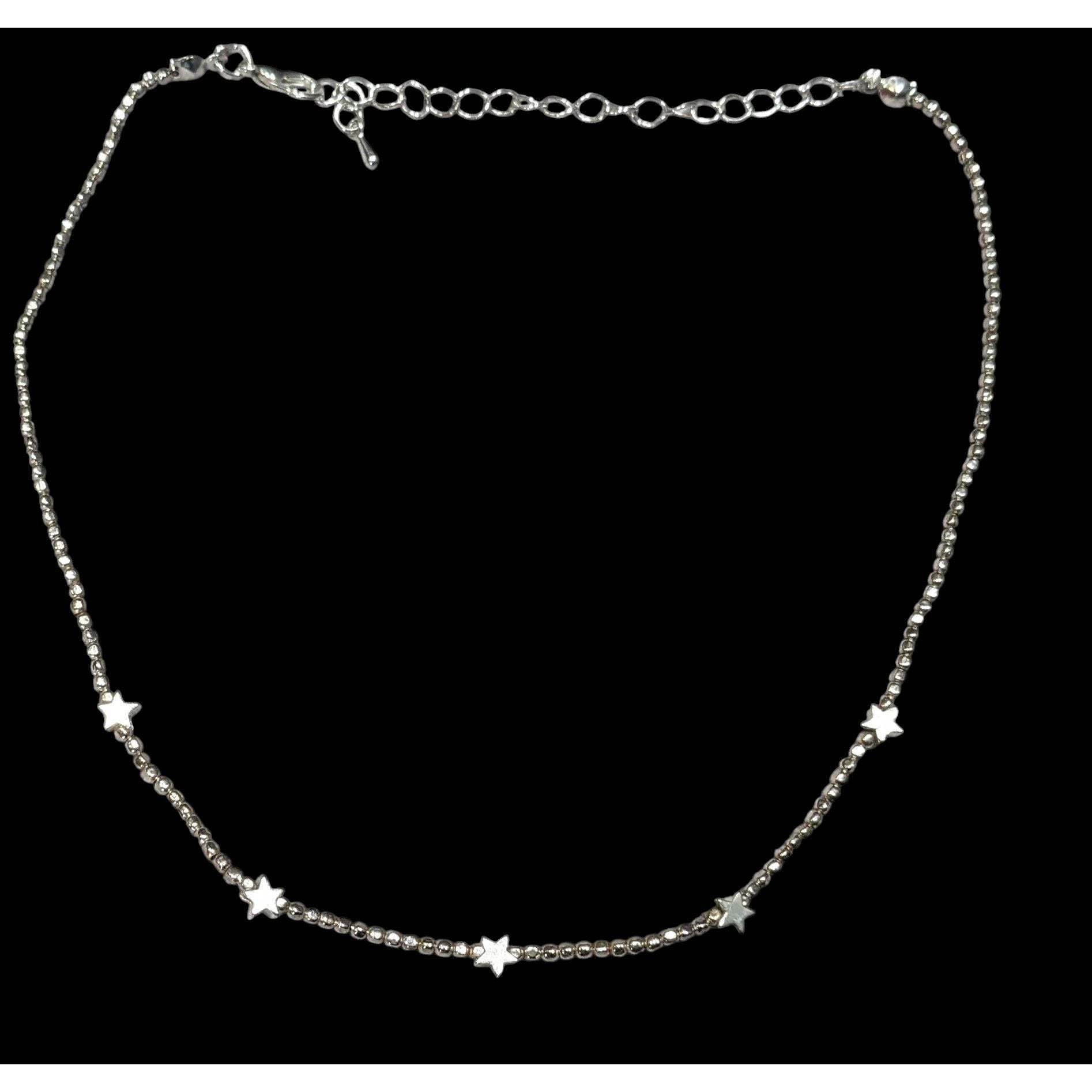 Minimalist Star Silver Tone Beaded Necklace