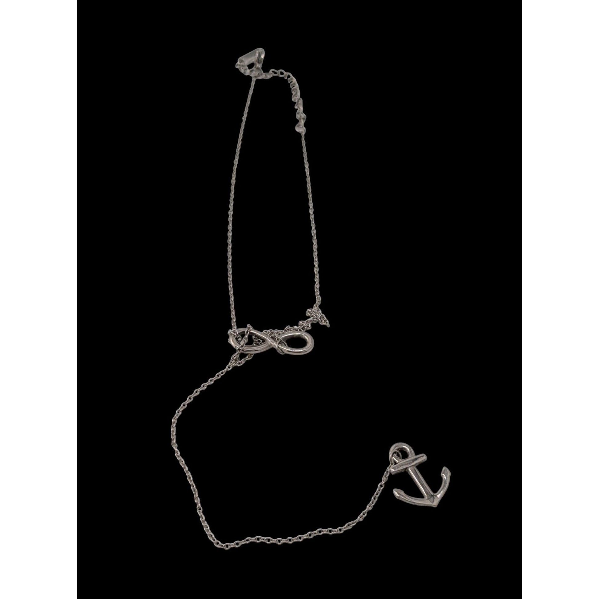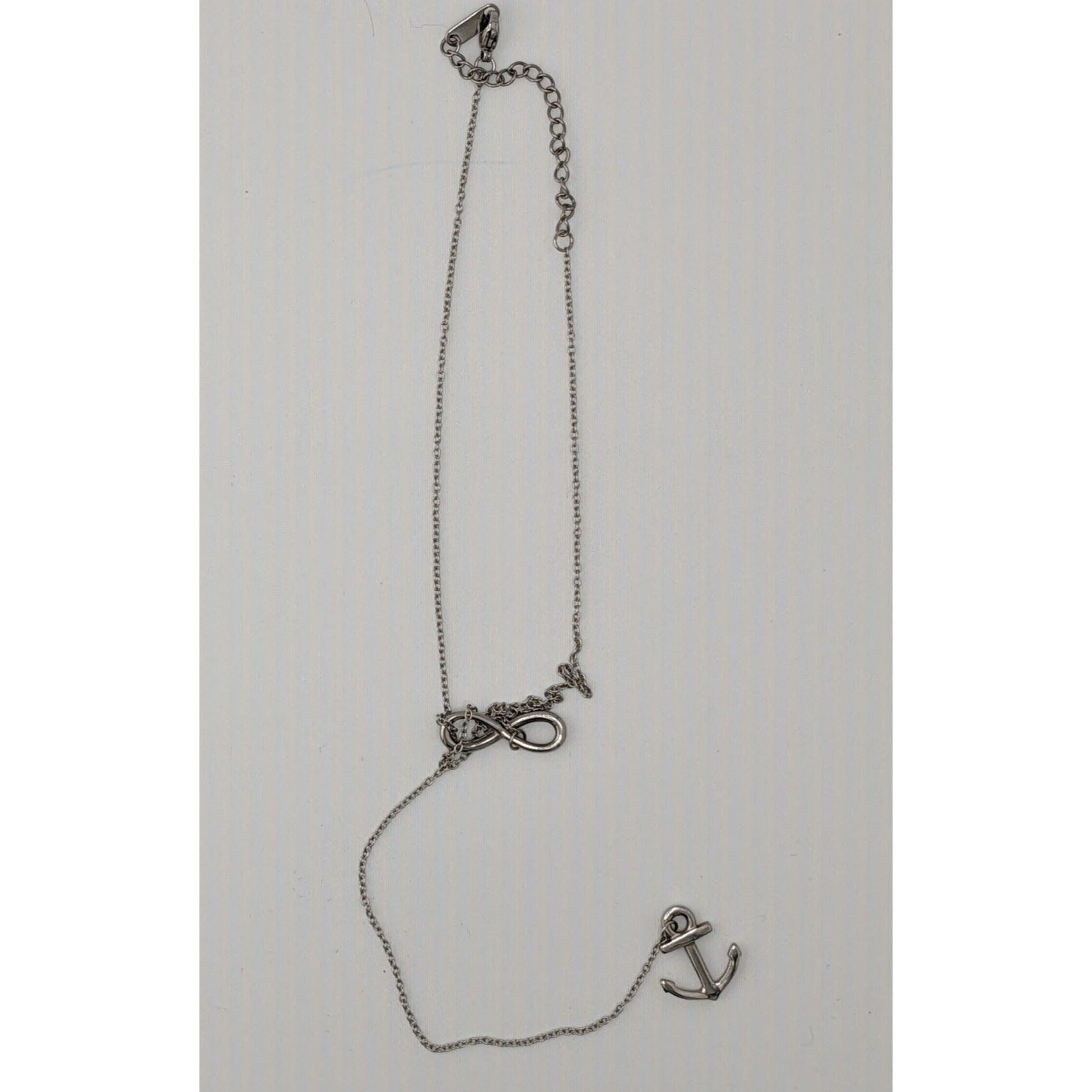 Nautical Infinity Anchor Lariat Silver Tone Necklace