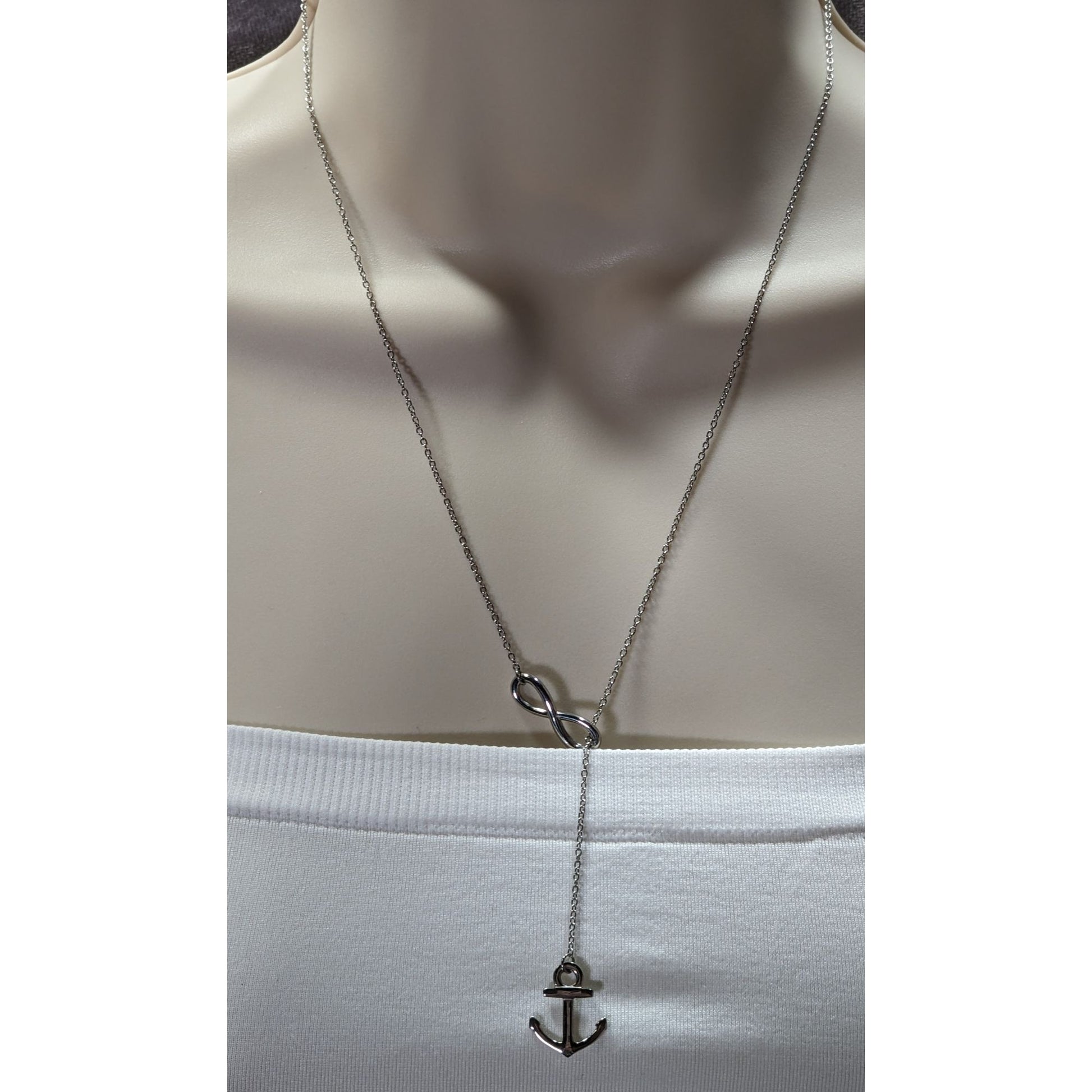 Elevate your style with this Nautical Infinity Anchor Lariat Necklace. Its elegant silver tone and intricate anchor design make it a timeless piece. Perfect for any occasion, this necklace adds a touch of sophistication to your outfit.