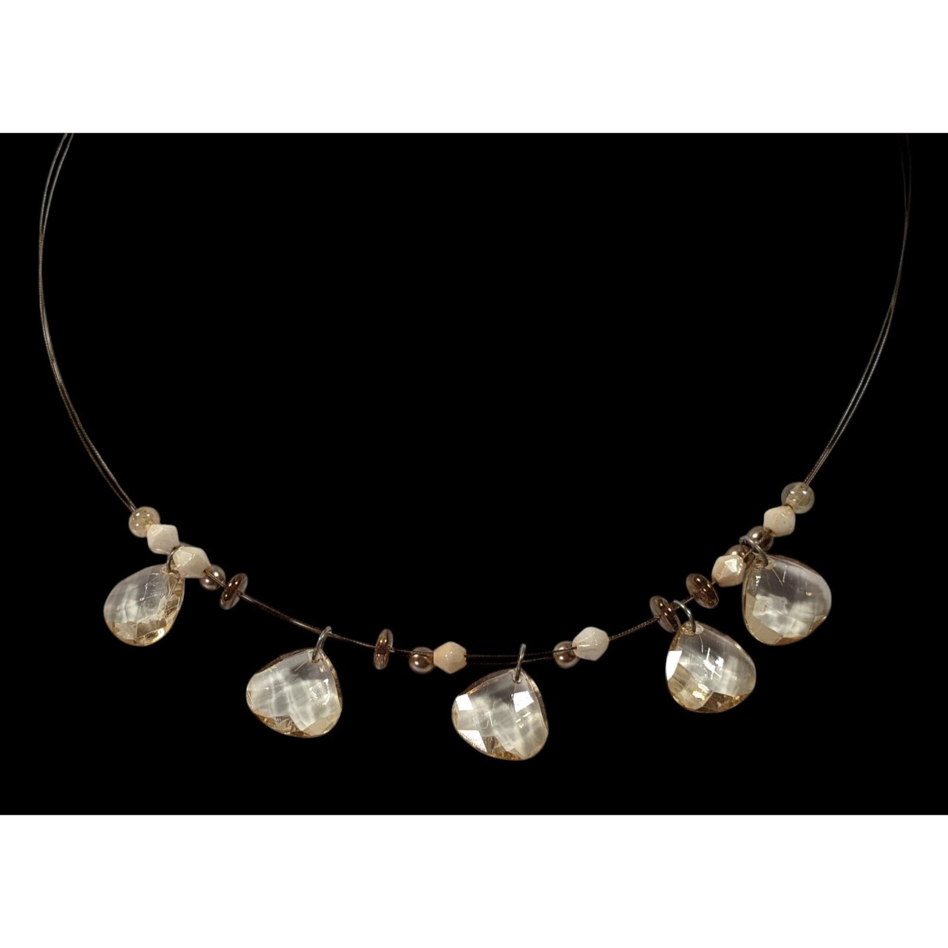 Neutral Glam Faceted Gemmed Beaded Necklace