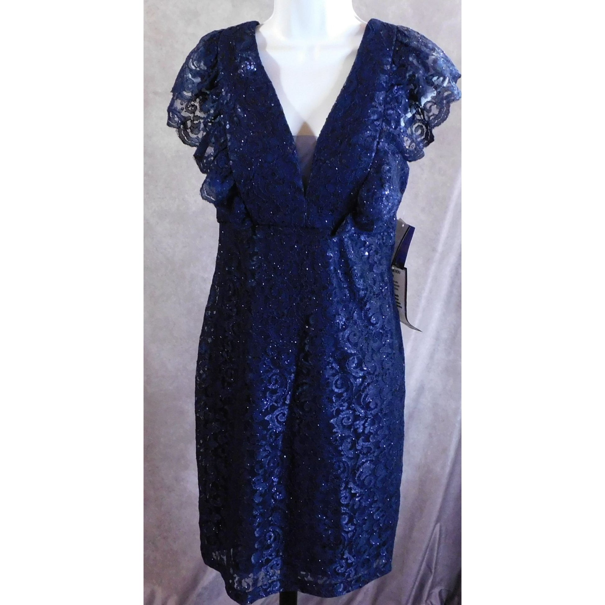 Nightway Sparkly Gothic Lace Dress In Dark Blue NWT