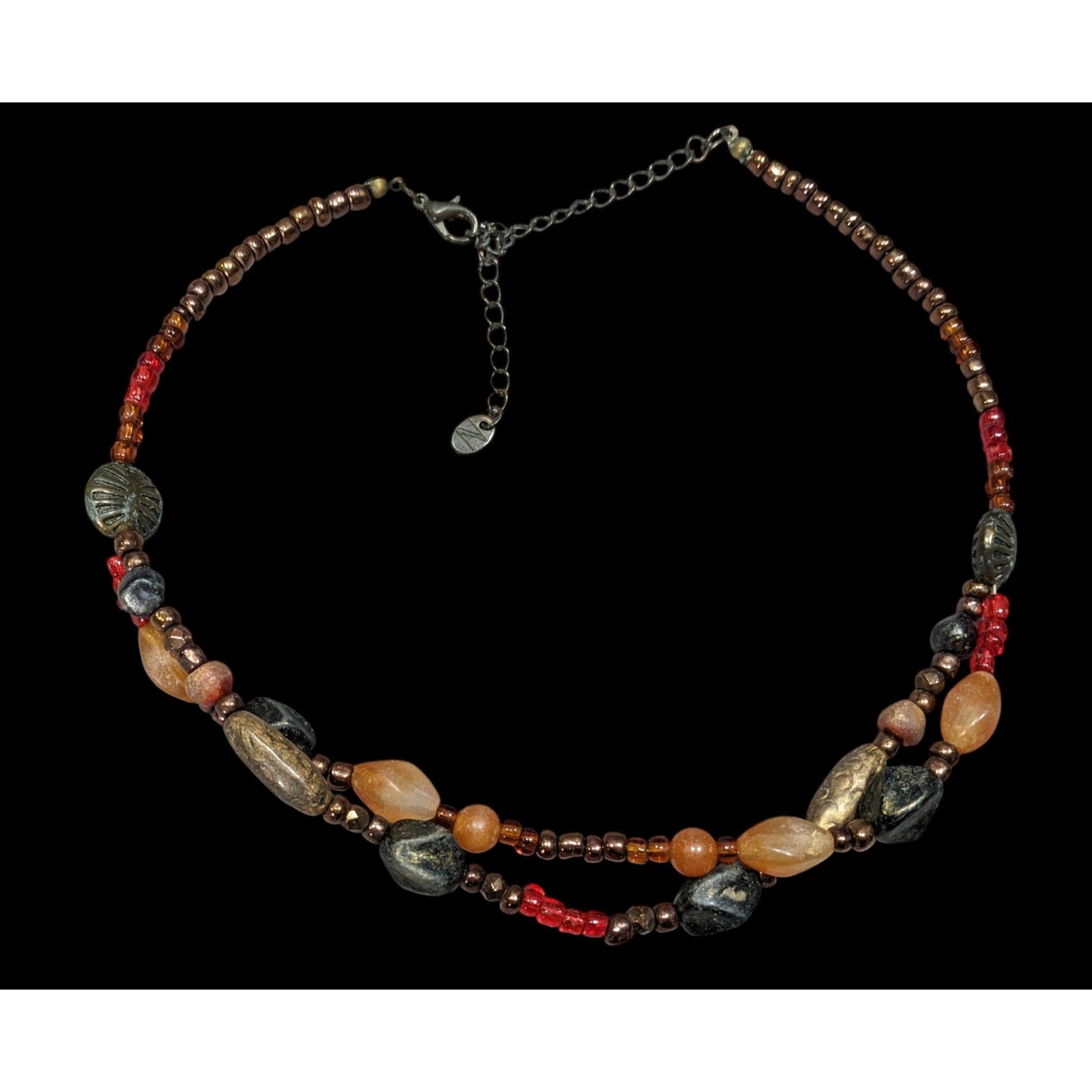 This Nordstrom necklace features earthy tones with beaded glass and faux stone elements, perfect for adding a natural touch to any outfit. The unique design is versatile for various occasions.