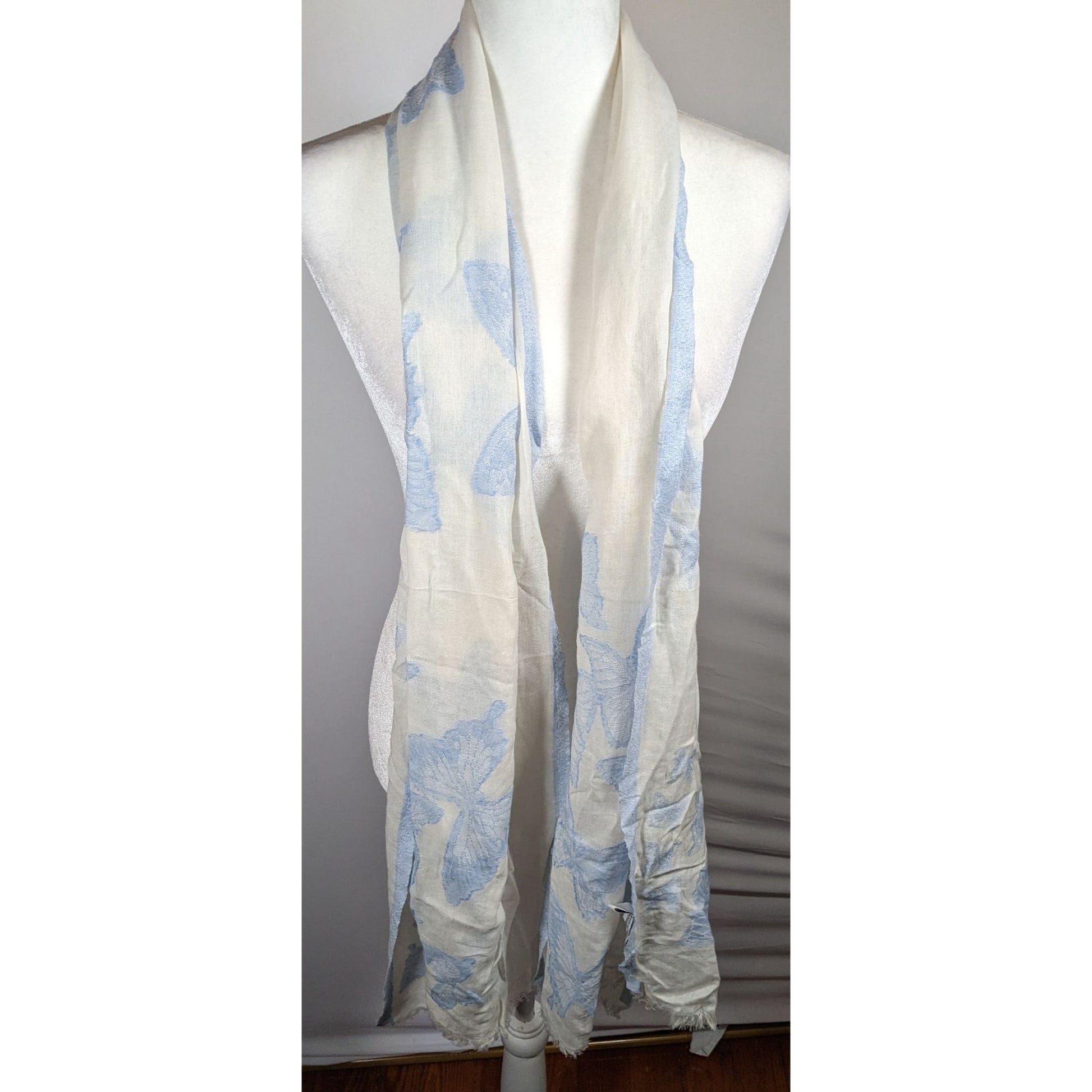 Pam's Pashminas & Exotic Scarves Fairycore Blue And White Butterfly Cotton Scarf