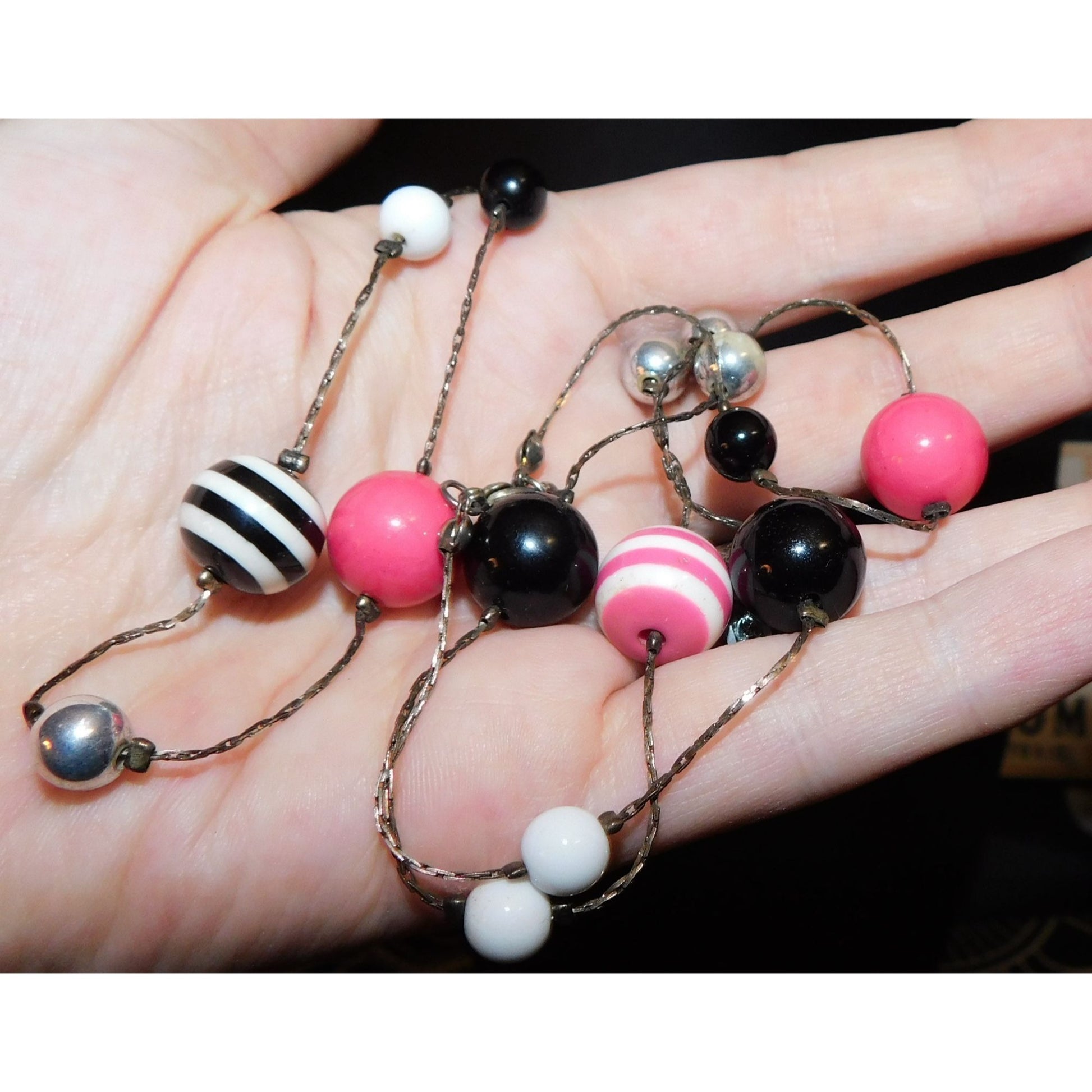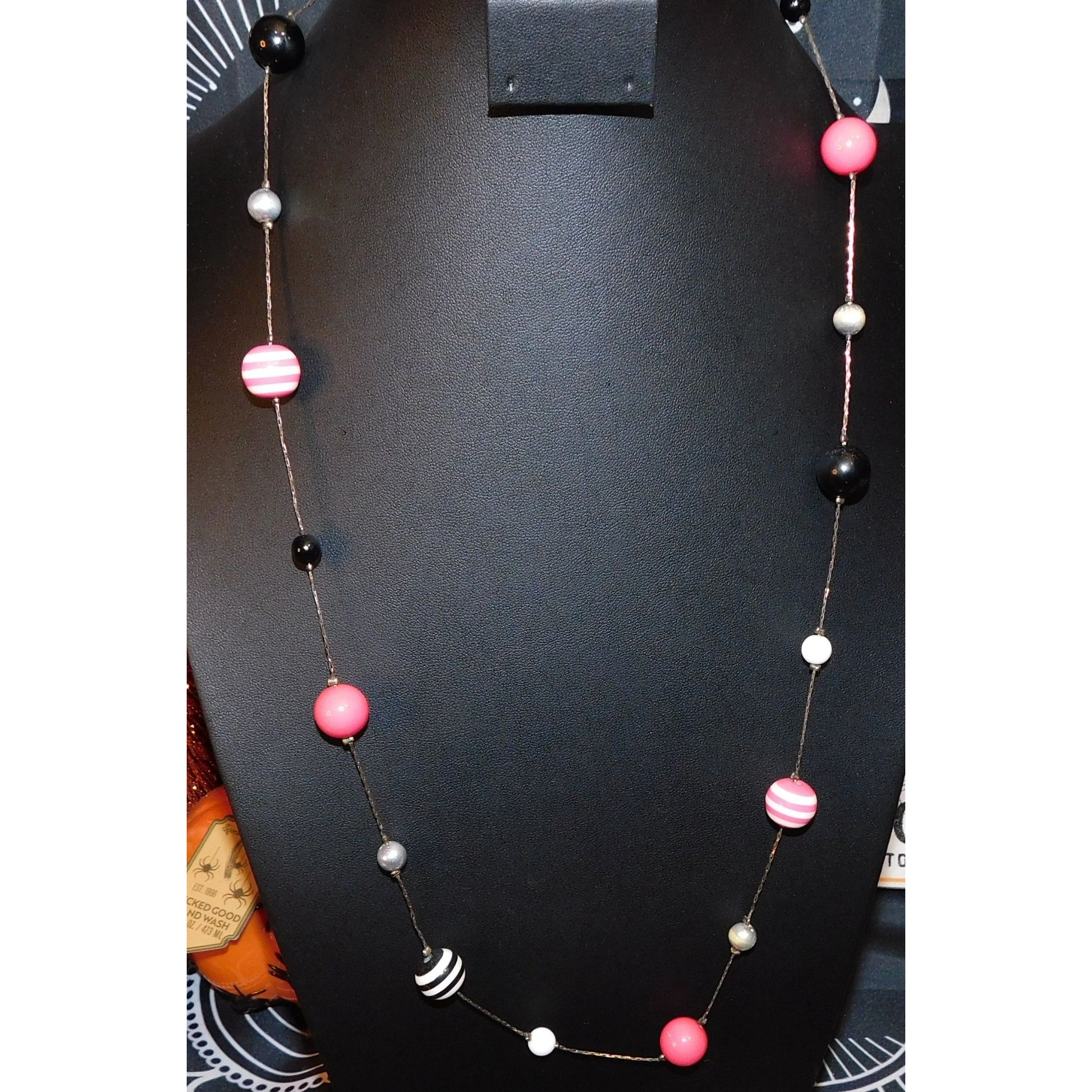 Pastel Goth Bubblegum Pink And Black Stripe Station Necklace