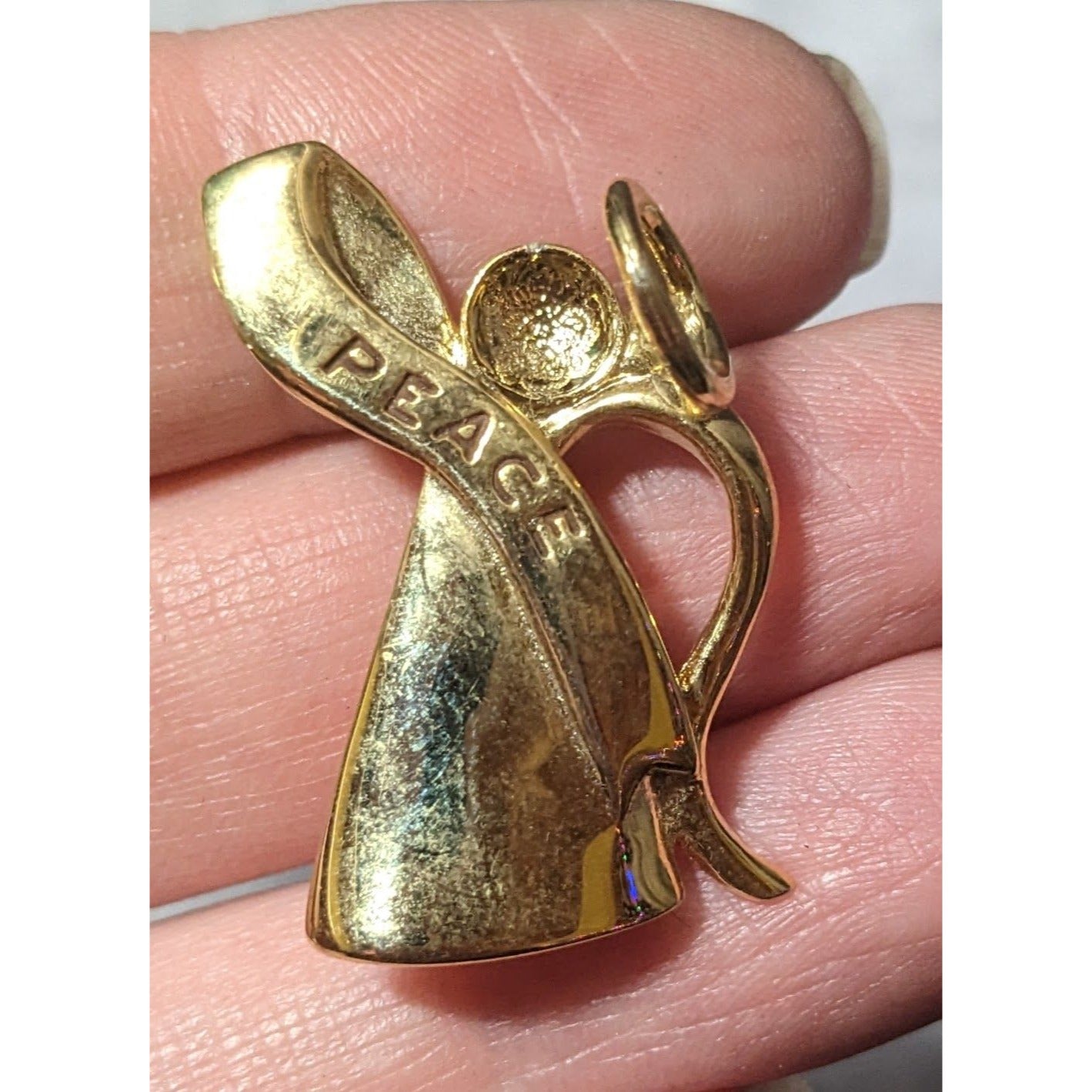 Peace Angel With Sash And Halo Gold Tone Brooch