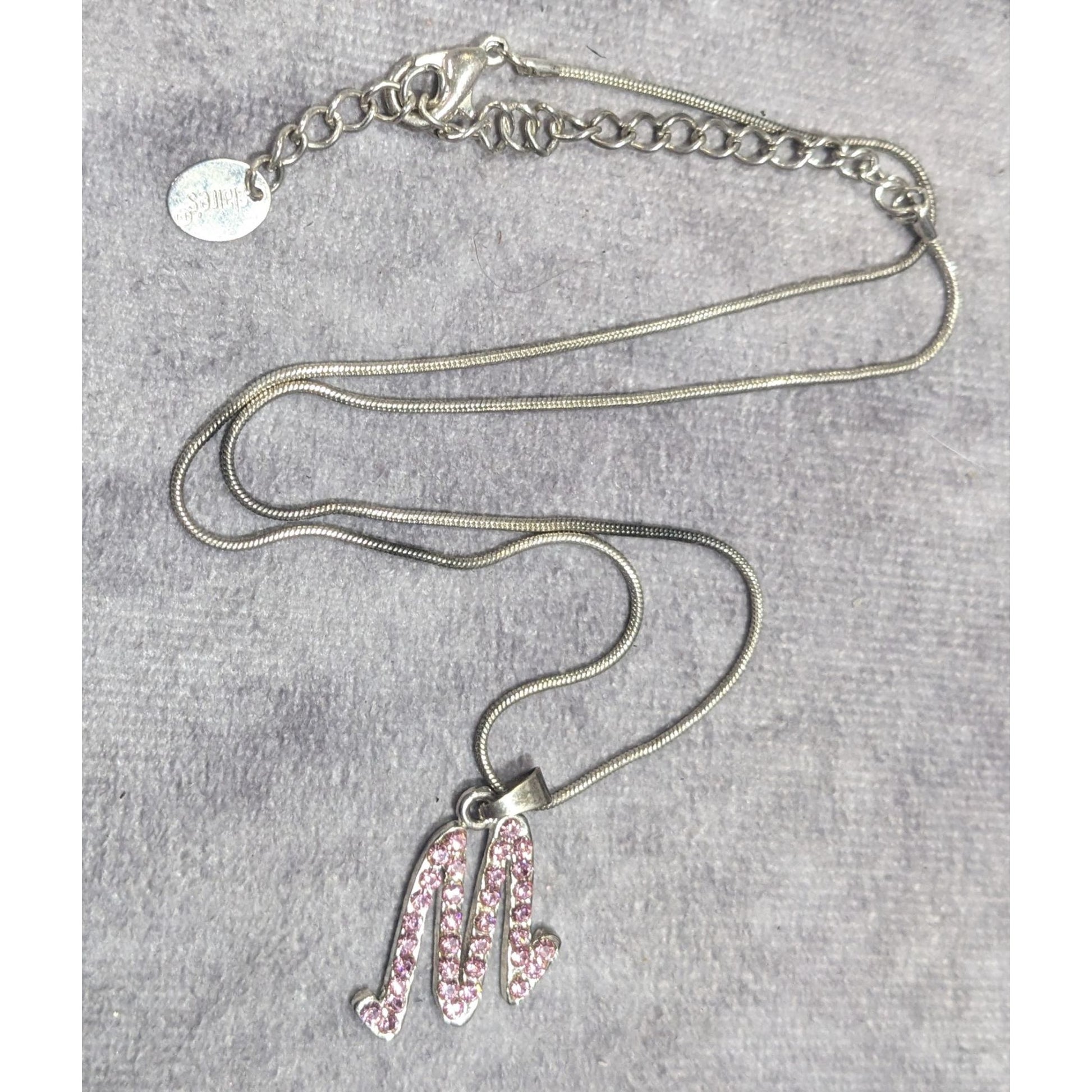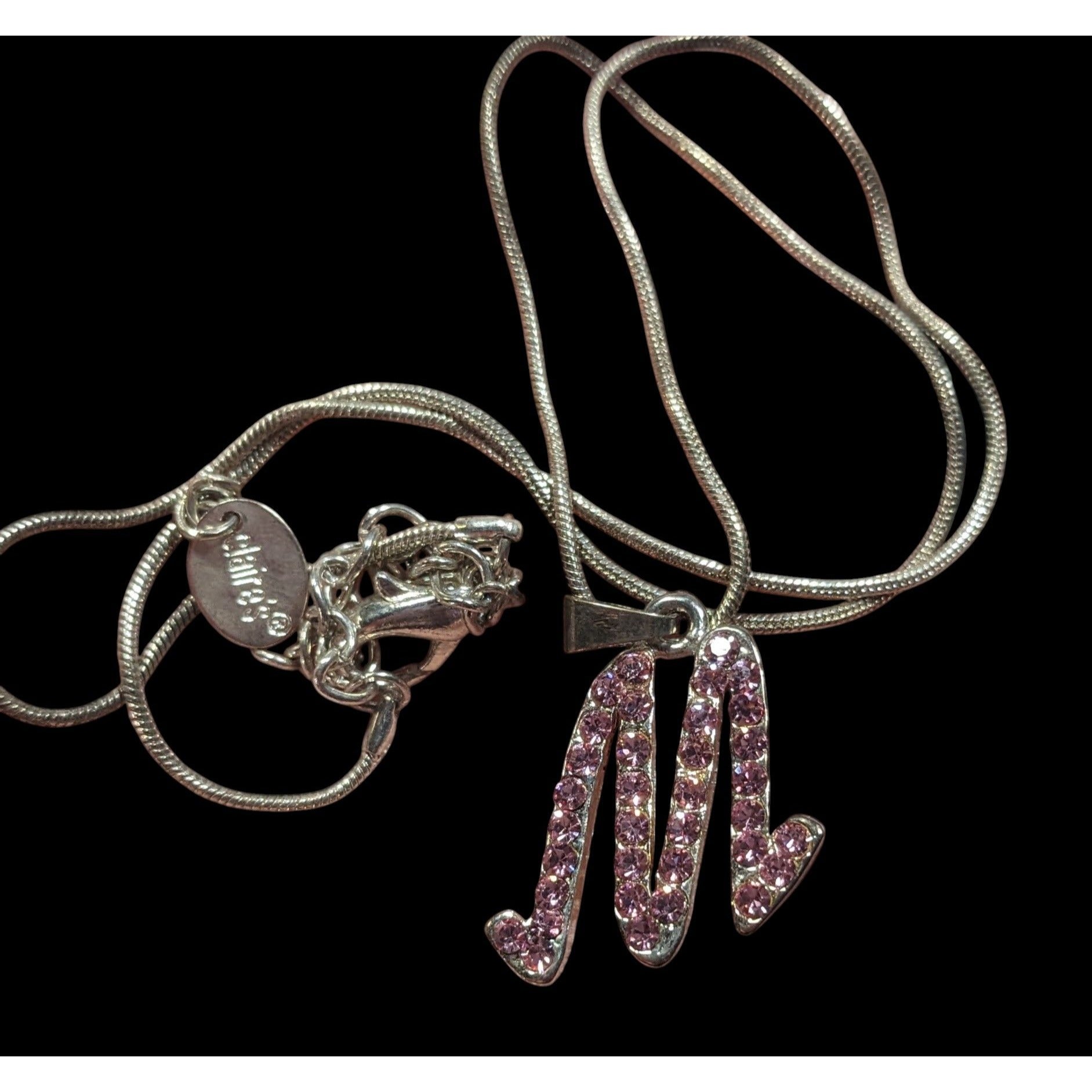 Pink Rhinestone M Monogram Silver Tone Pendant Necklace