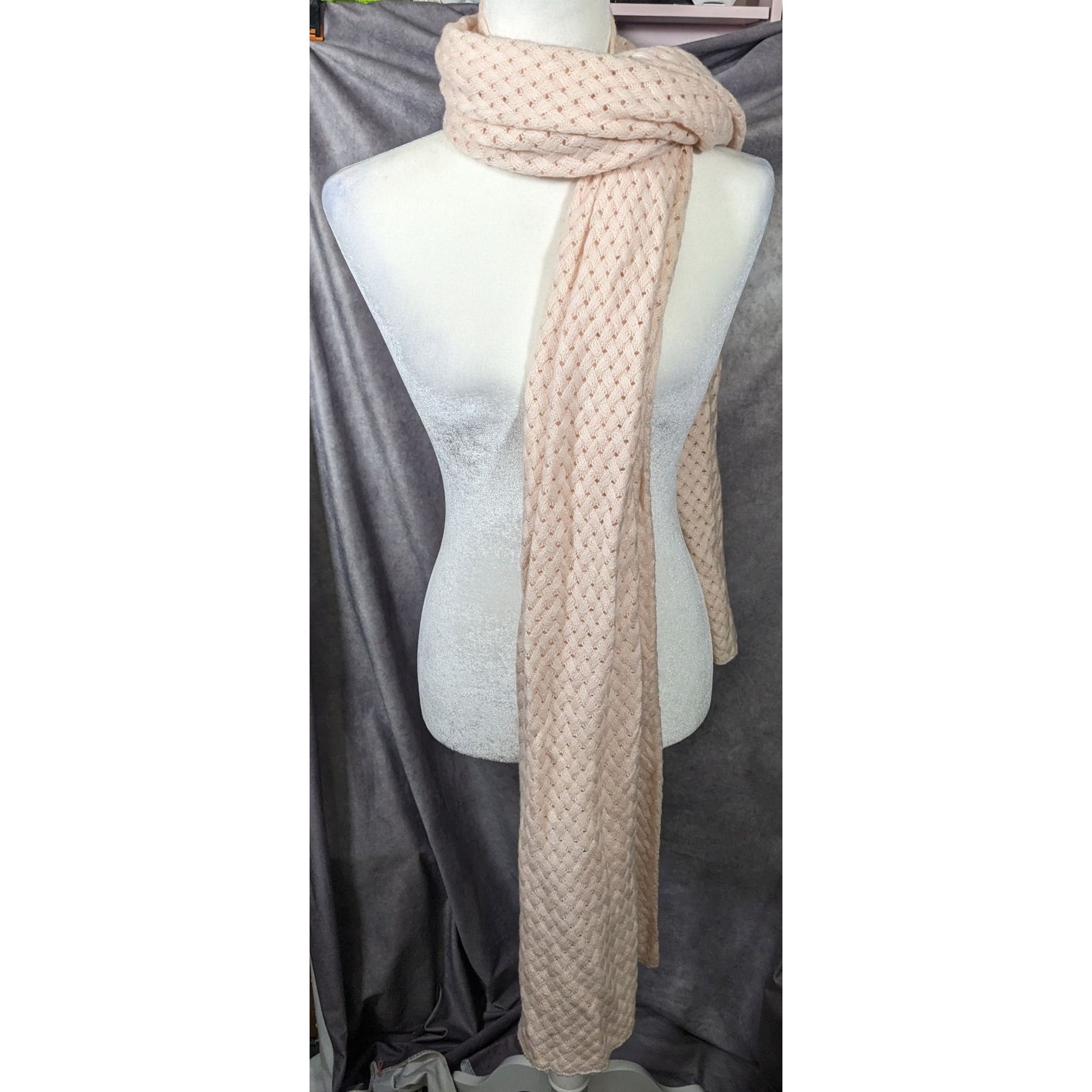 Preppy J.Crew Pale Peach Braided Knit Wool Scarf