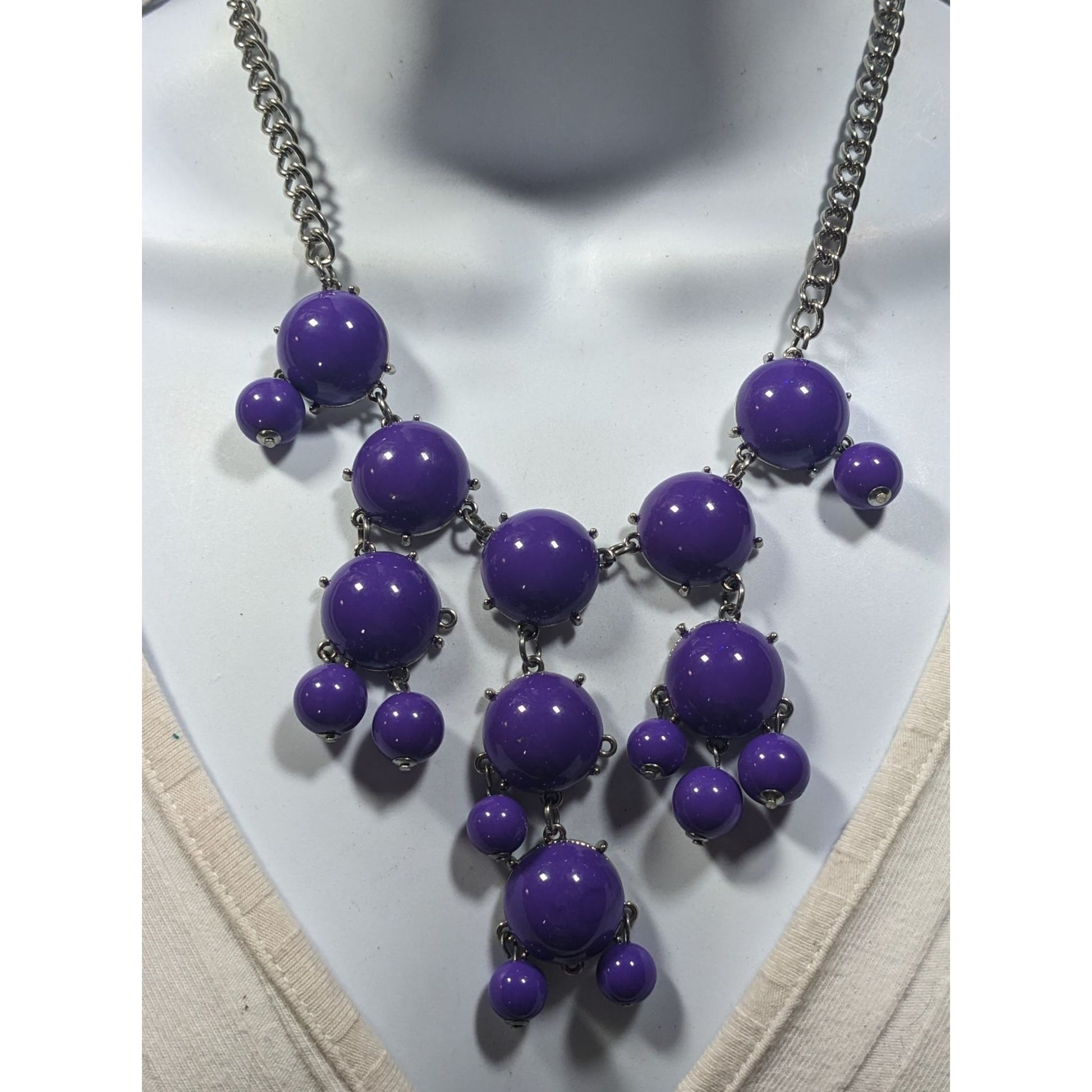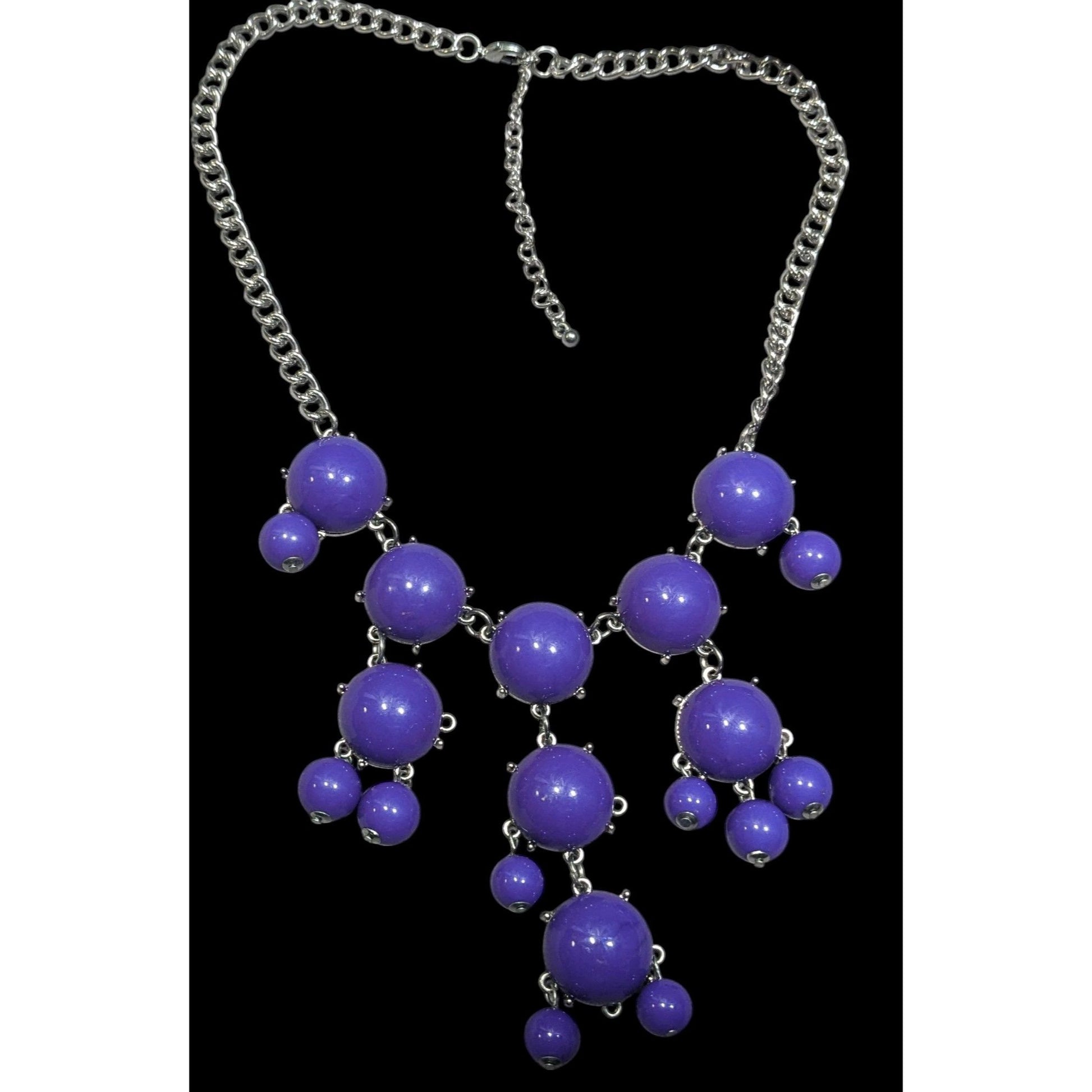 Purple Y2K Bubble Statement Necklace With Silver Tone Chain