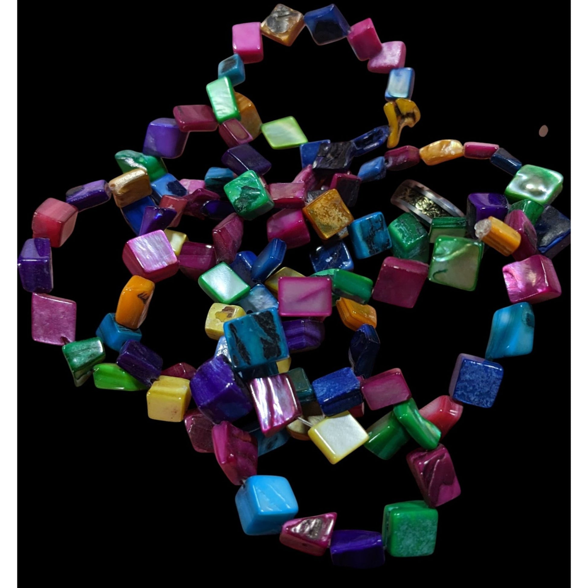 Rainbow Dyed Square Shell Chip Beaded Necklace
