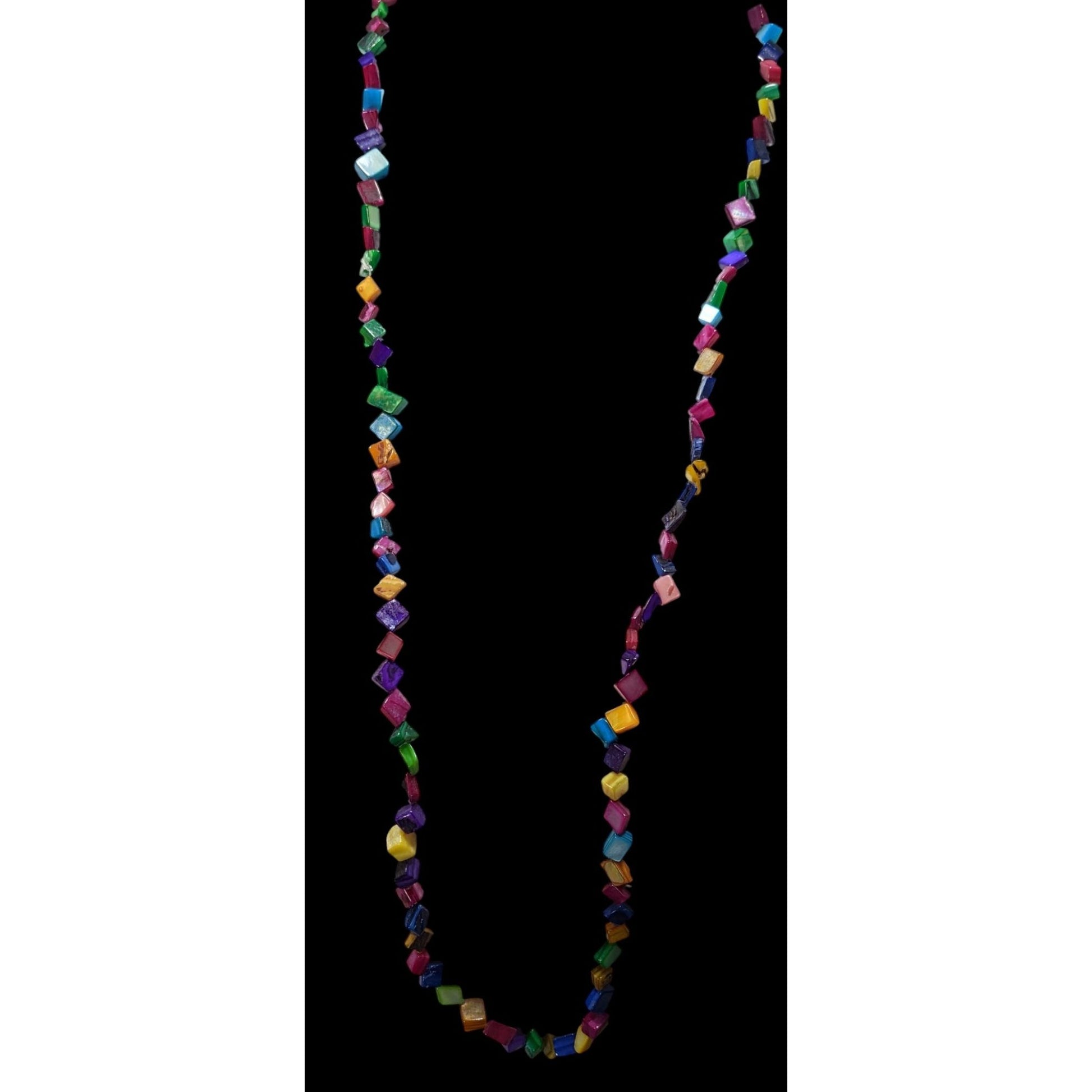 Brighten your look with this Rainbow Dyed Square Shell Chip Beaded Necklace. Its vibrant colors and unique design make it a perfect accessory for any outfit.