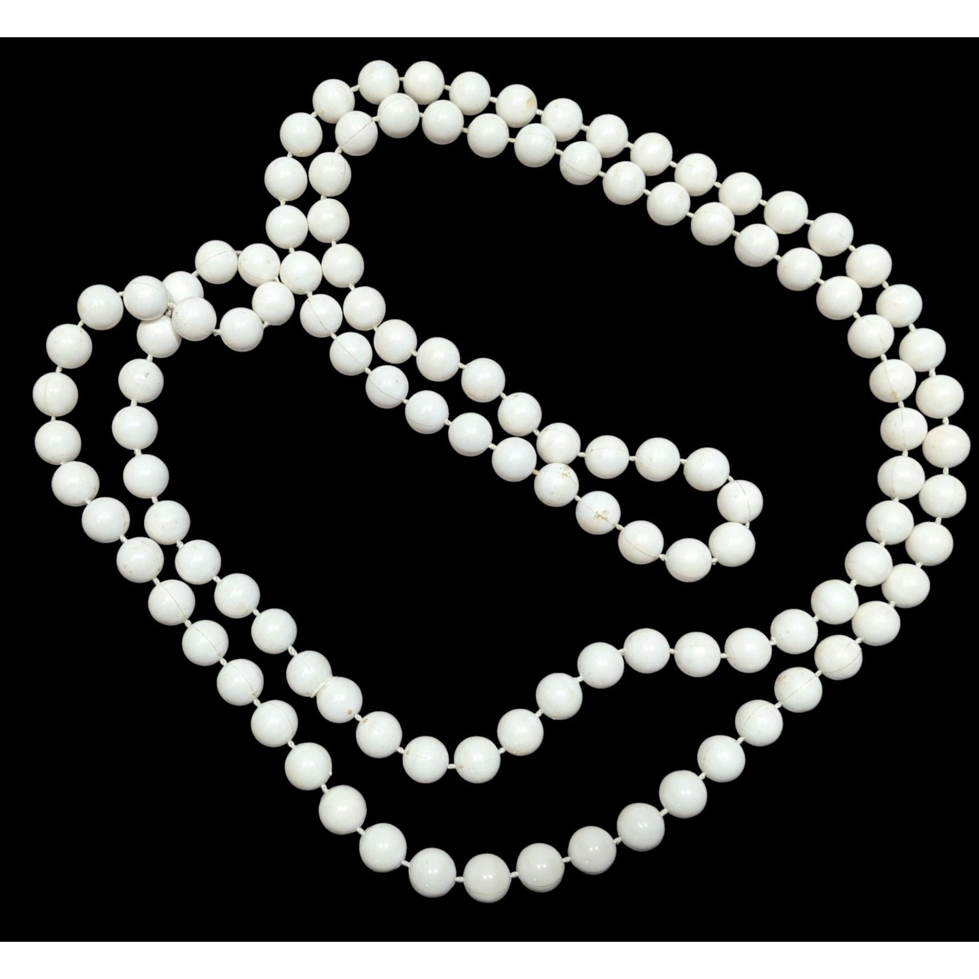 Retro White Extra Long Plastic Beaded Necklace