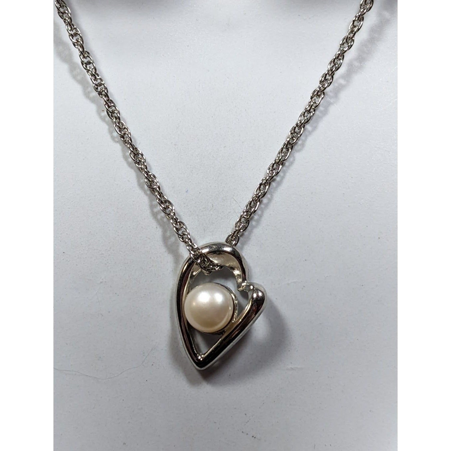 This elegant heart pendant necklace features a romantic abstract design with a delicate pearl accent, perfect for special occasions or everyday wear.