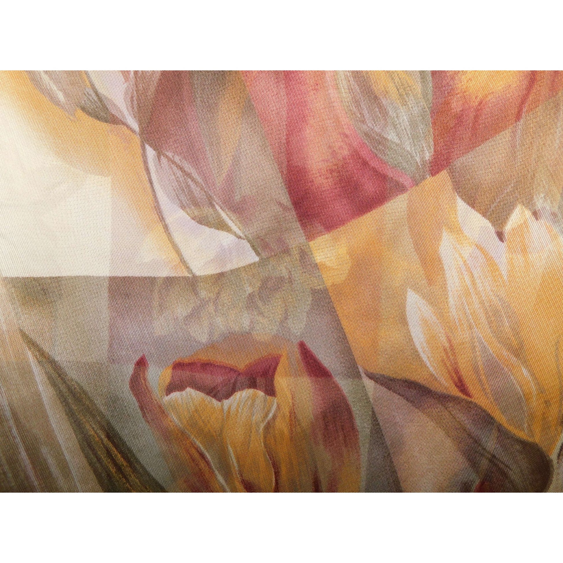 This lightweight scarf features a sheer floral color block design, perfect for adding a touch of elegance to any outfit. Its versatile and airy fabric makes it an ideal accessory for any season.