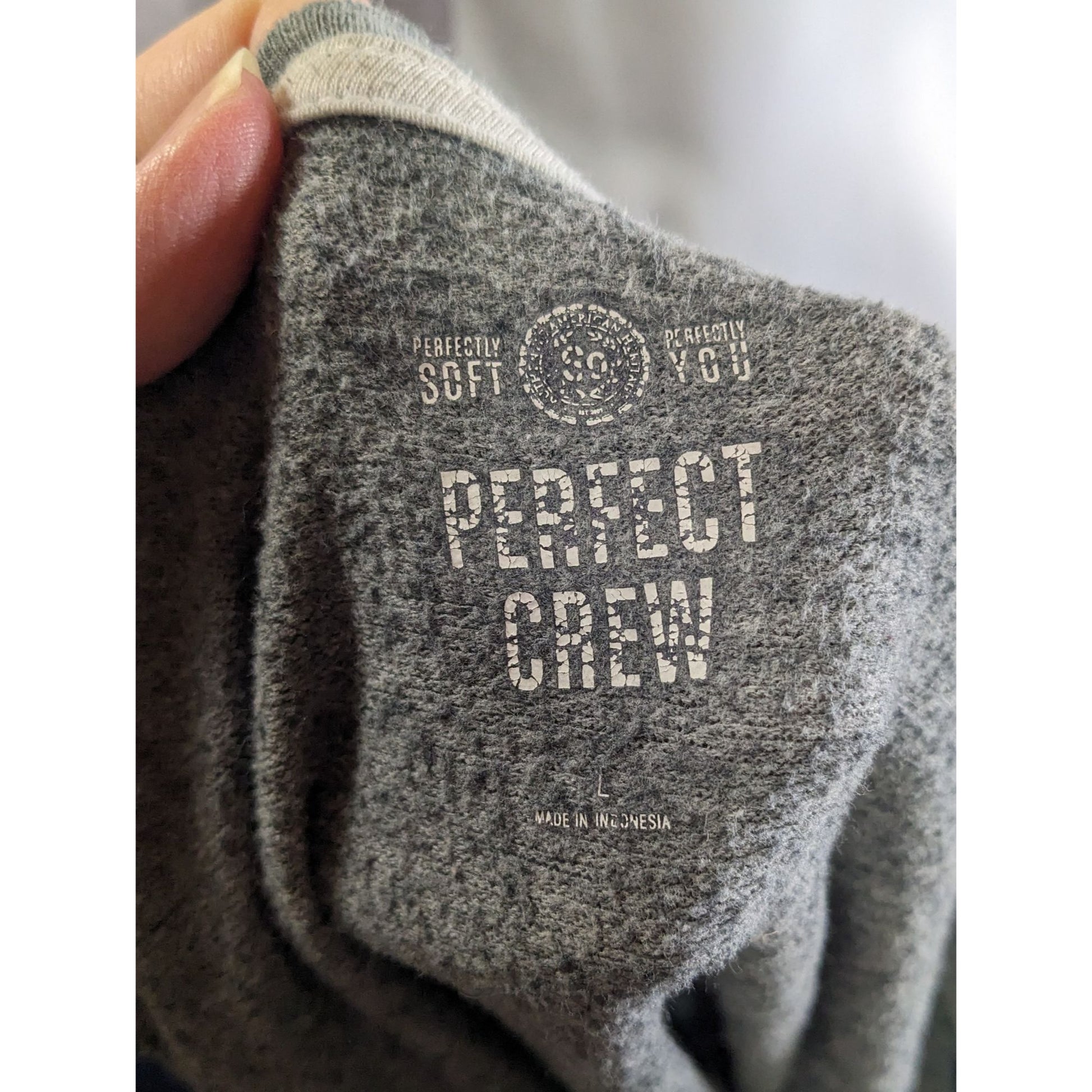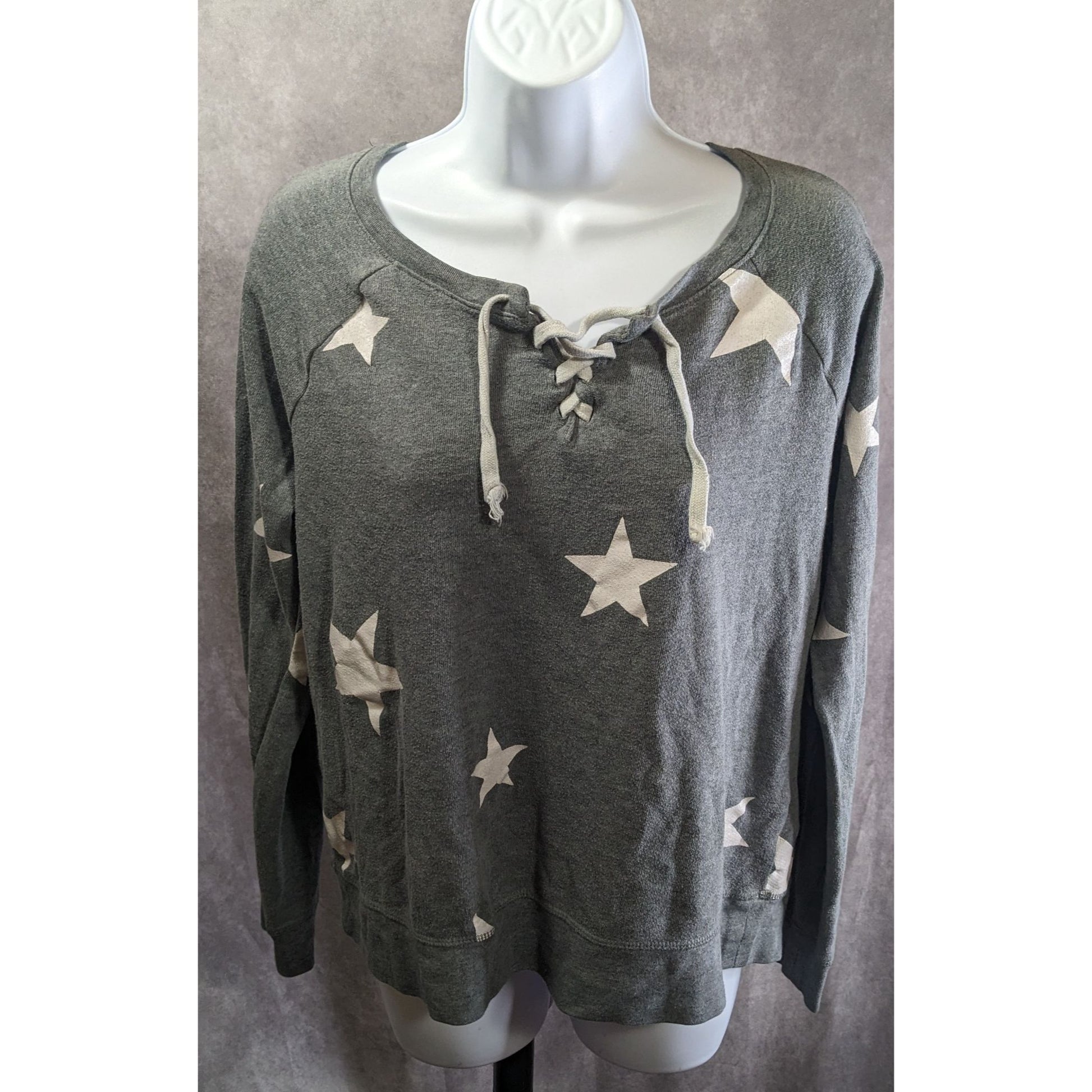 SO Perfect Crew Gray Star Print Lace-Up Sweatshirt Size L Made In Indonesia Soft Cotton Blend Casual Style