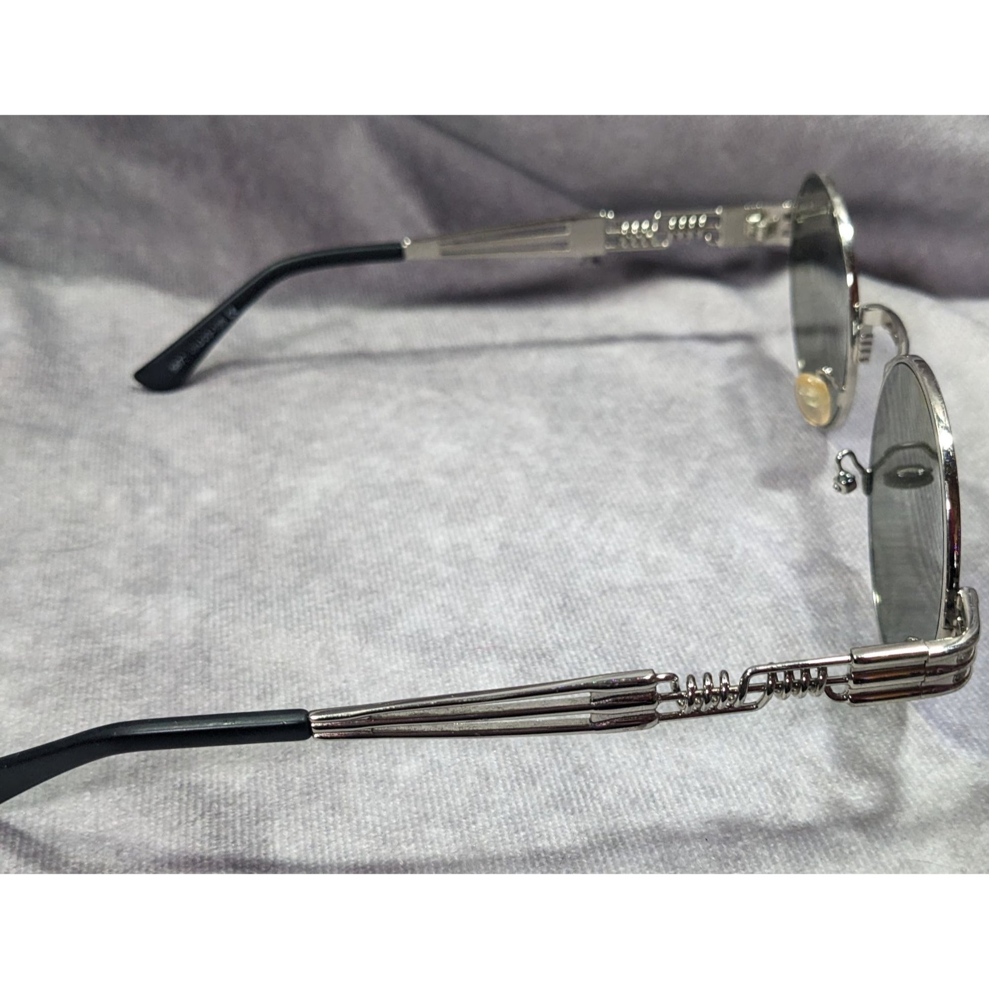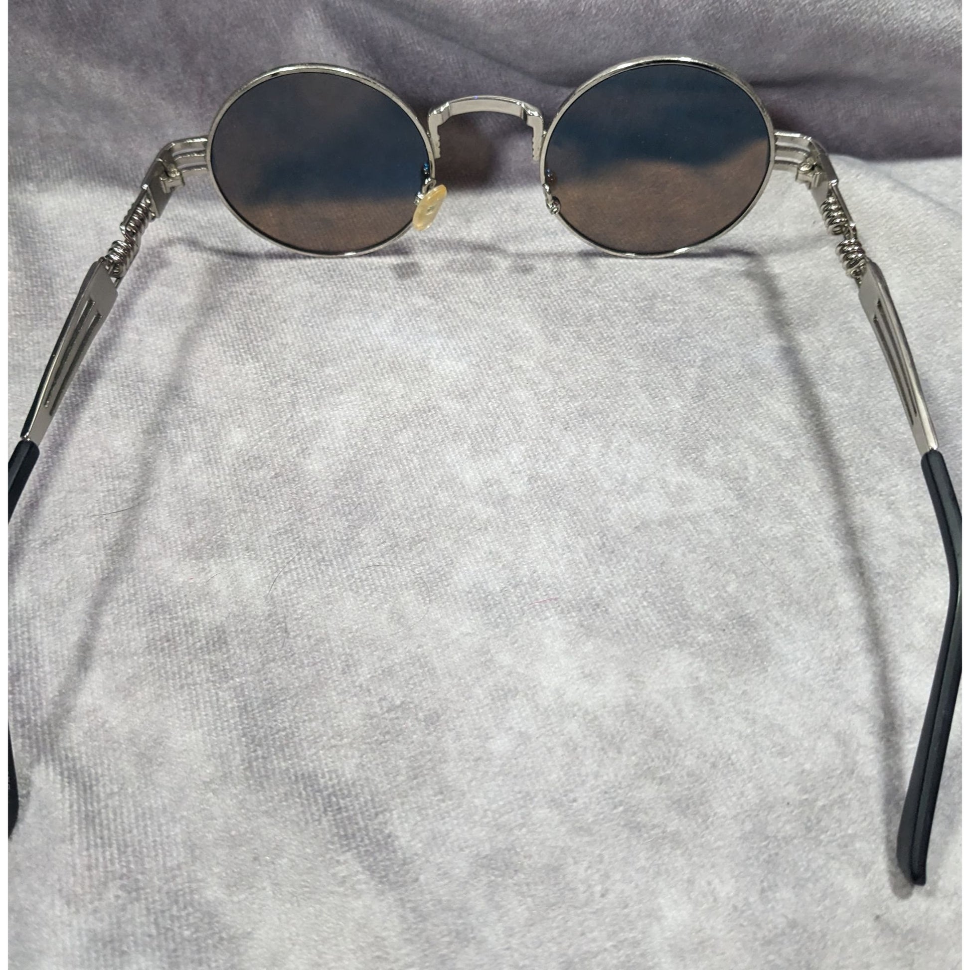 Steampunk Retro Round Blue Mirror Lens Silver Tone Sunglasses