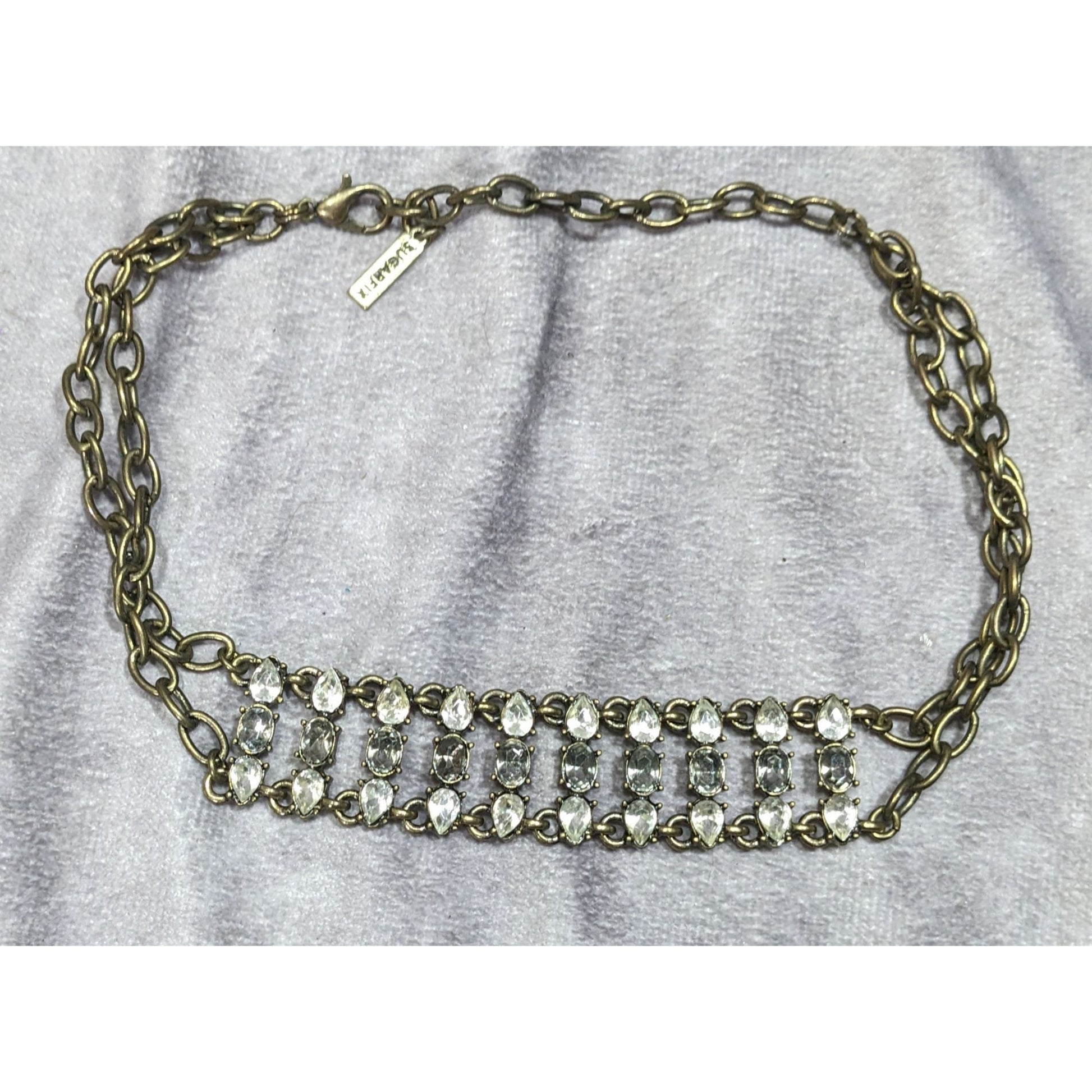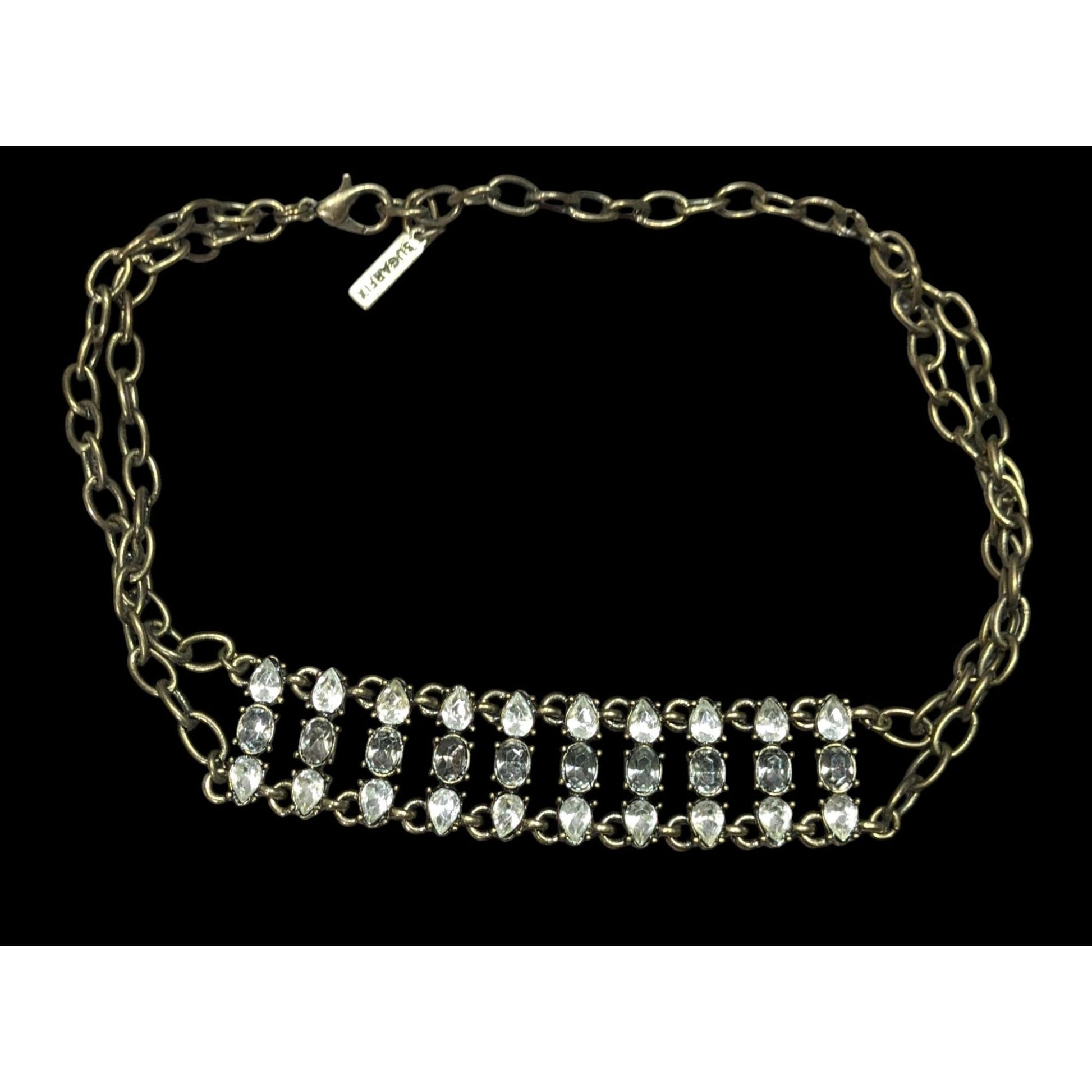 Sugarfix Industrial Glam Chain Choker With Clear & Smoky Crystals