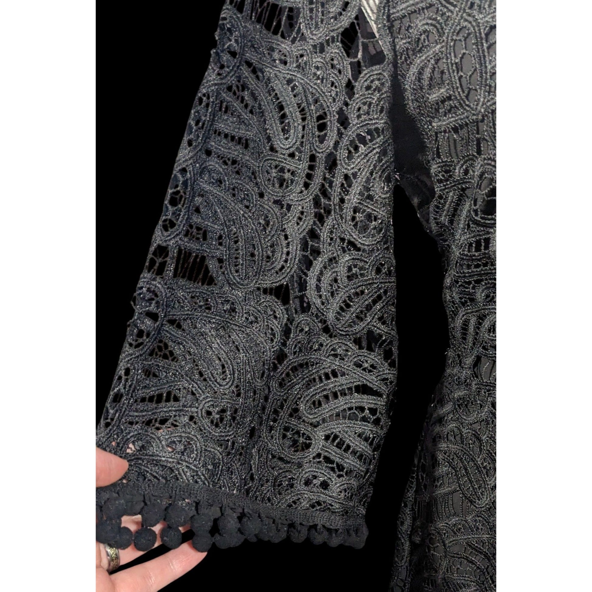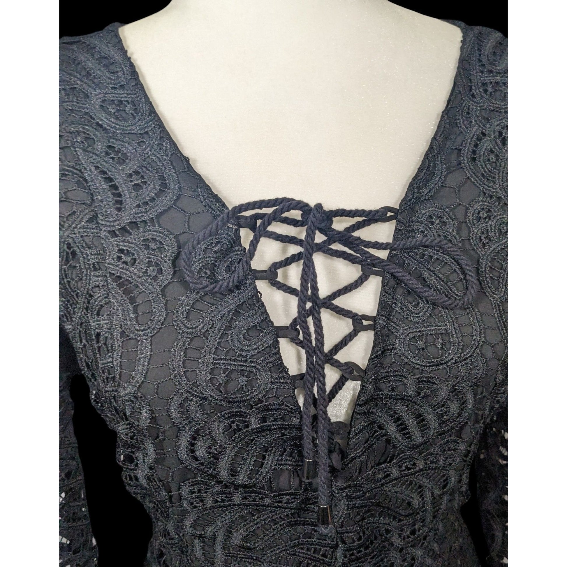 Tularosa Gothic Coal Black Lace Bell Sleeve Tie Front Dress Size Medium