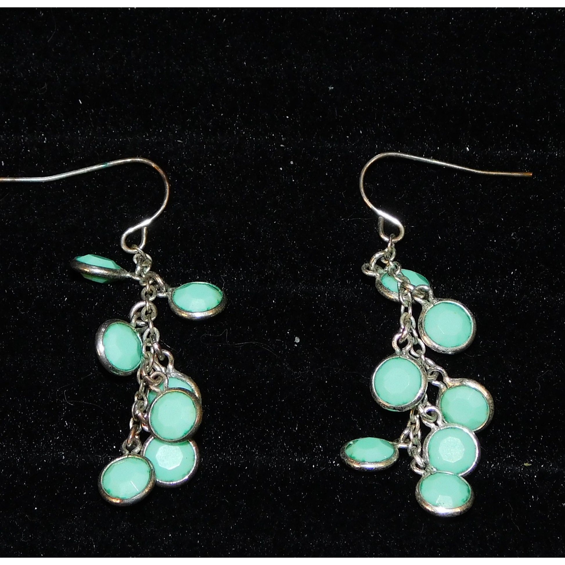 Turquoise Tone Dangle Earrings With Silver Tone Accents