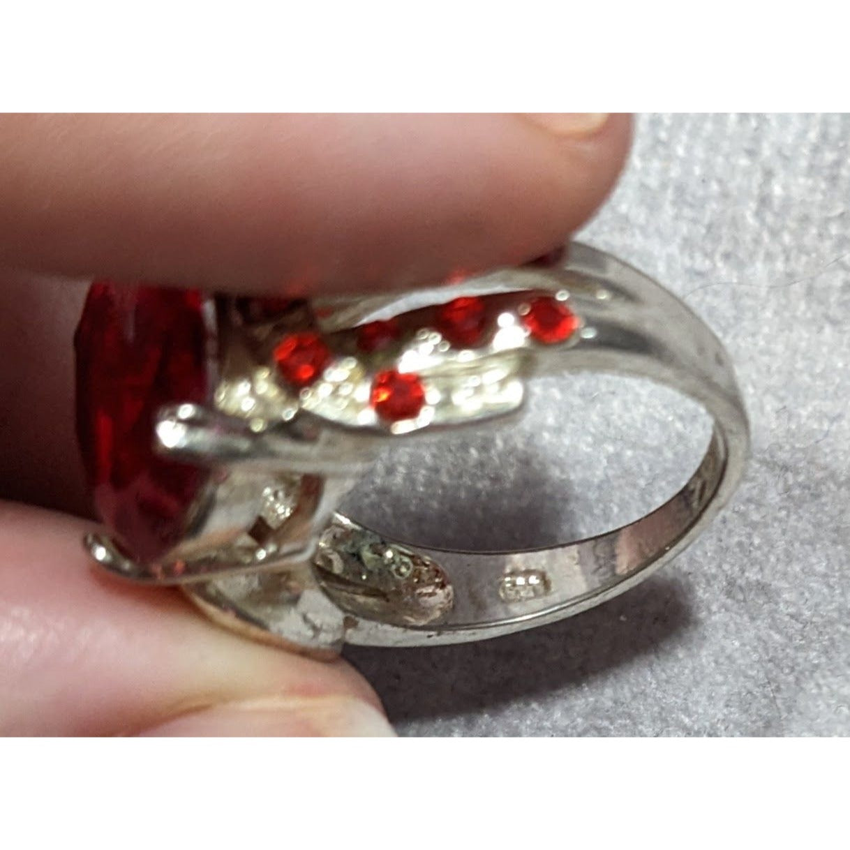 Vampire Blood Buckle Accent Red And Silver Tone Ring Marked 925