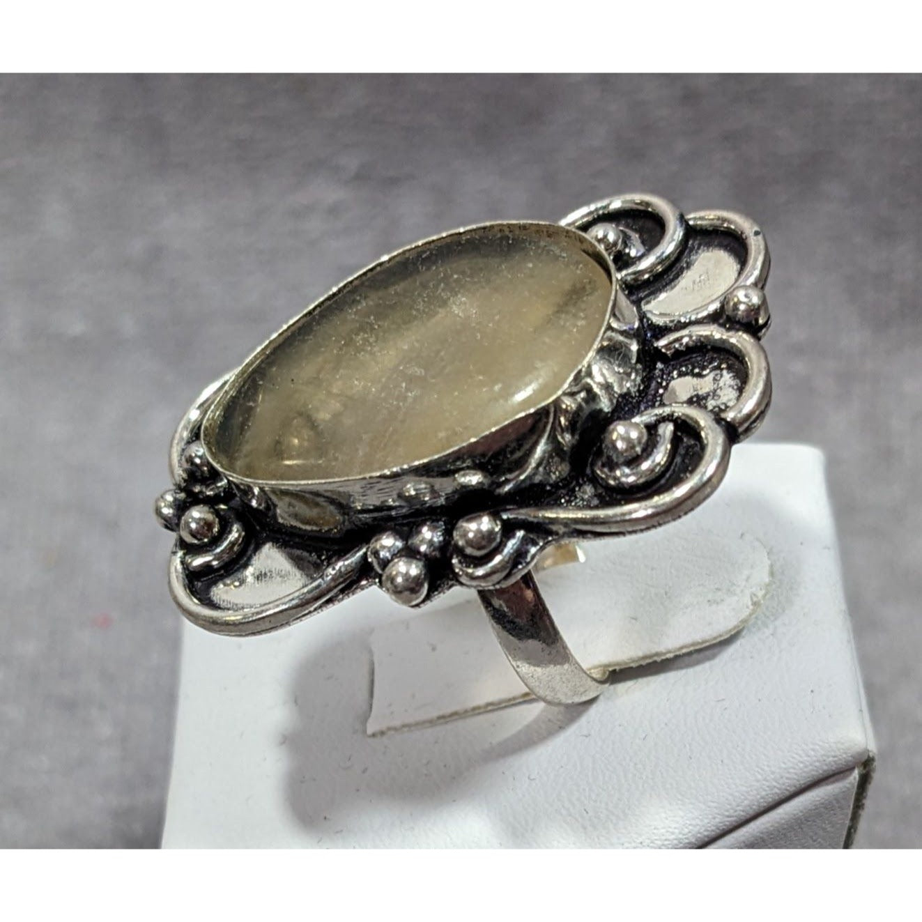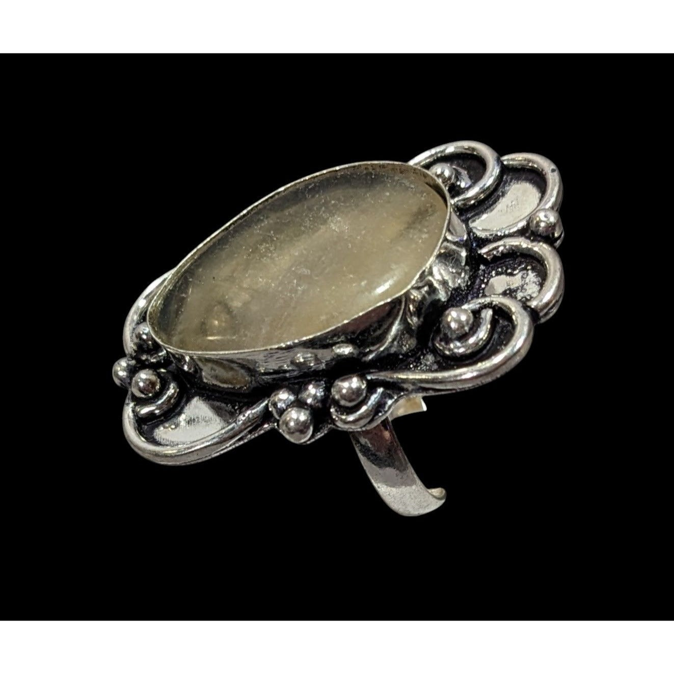 Victorian Style Rutilated Quartz Sterling Silver Statement Ring Size 7