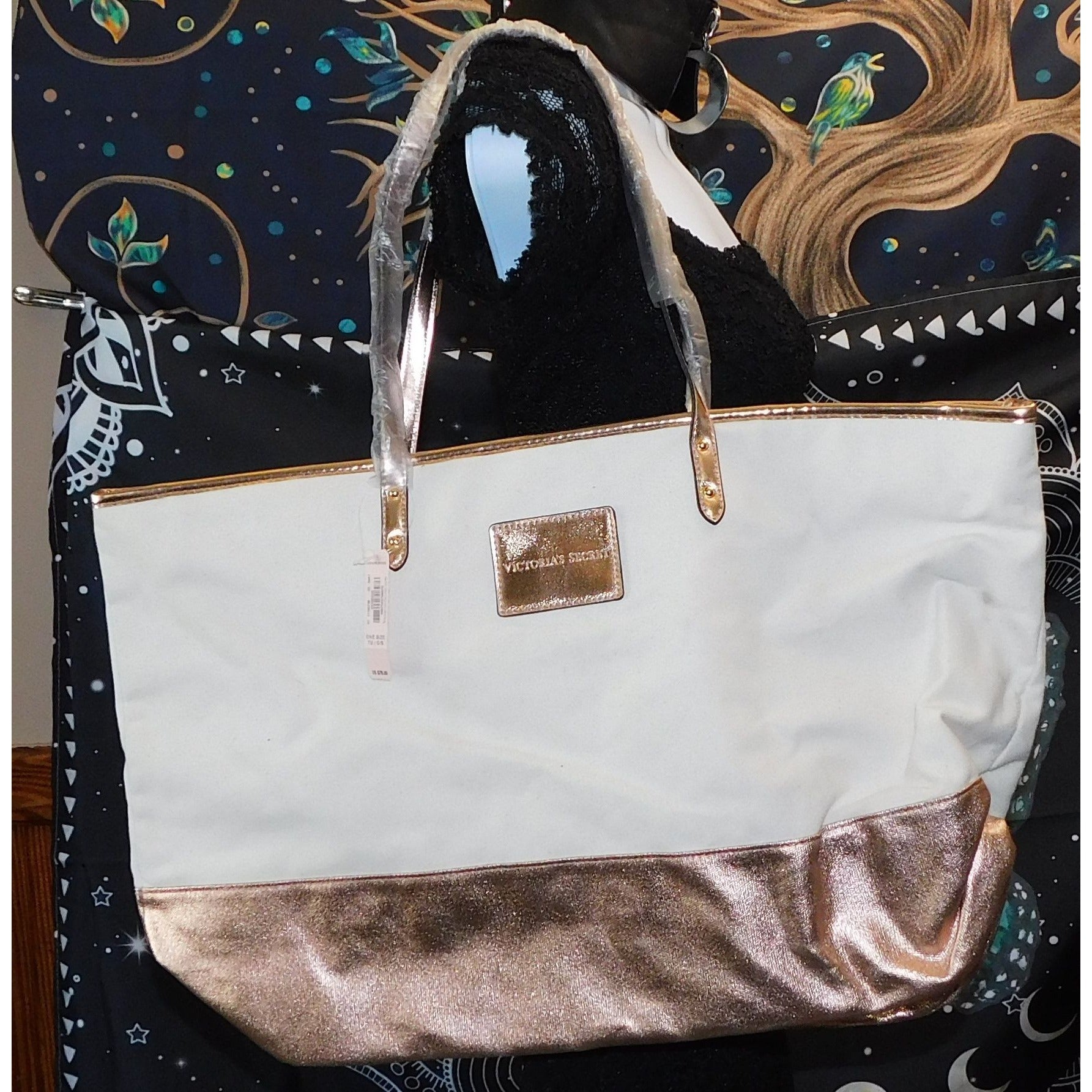 Victoria's Secret rose gold and beige tote.