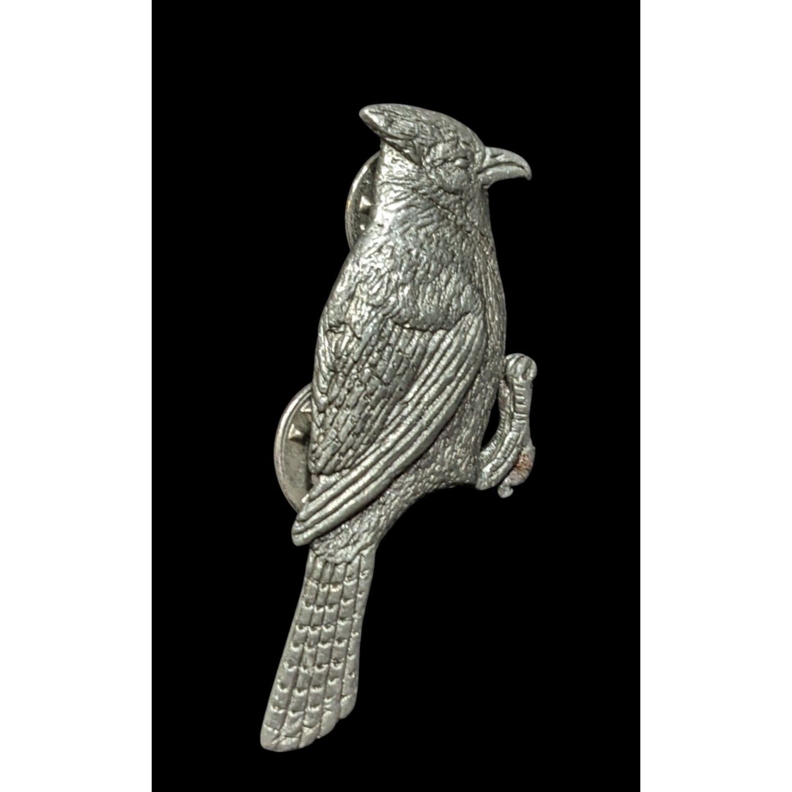 This vintage 1992 GG Harris Fine Pewter Blue Jay lapel pin is a collectible piece, perfect for bird lovers and pin enthusiasts. Its detailed craftsmanship captures the beauty of the Blue Jay, making it a timeless accessory.