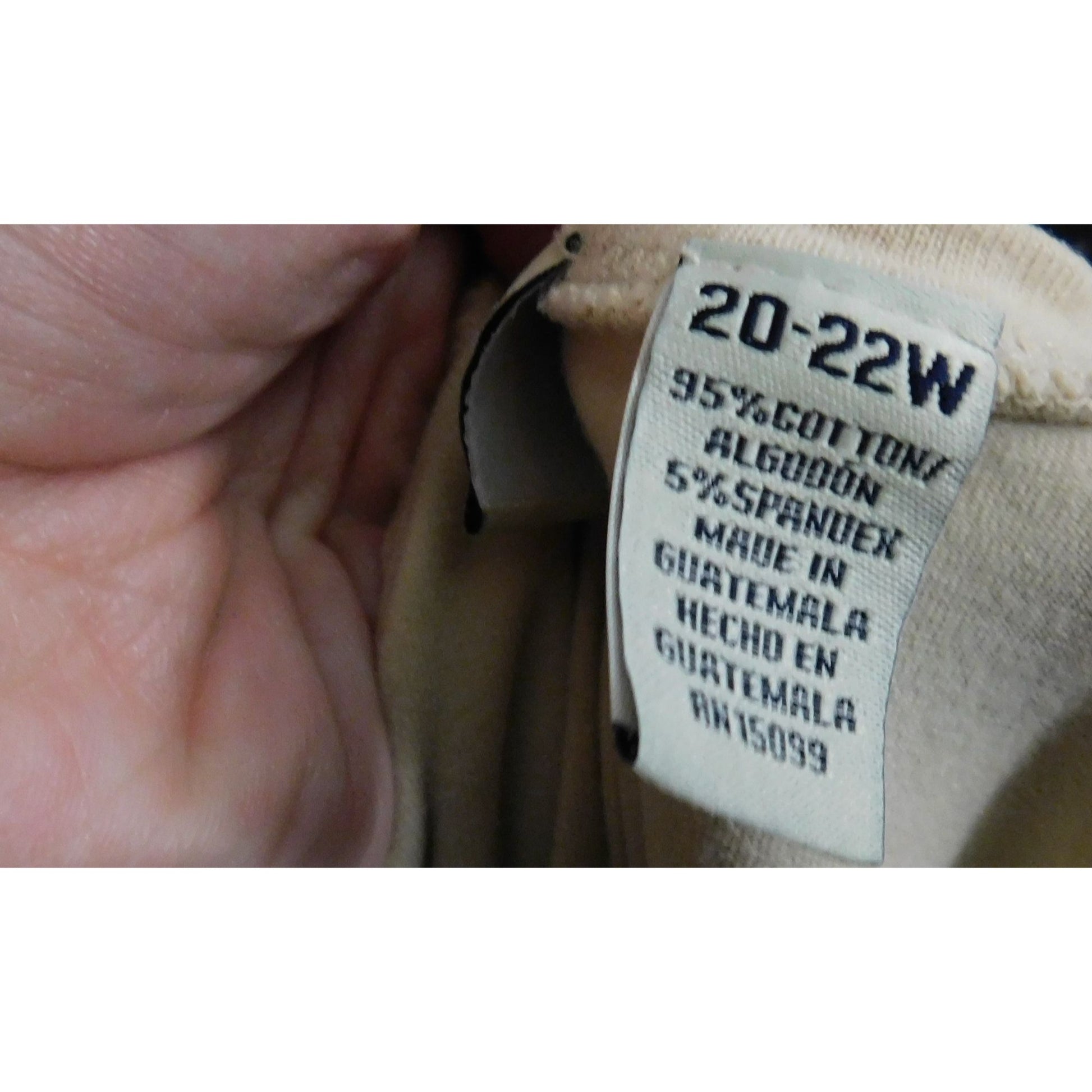 Super cute floral top by Classic Elements Woman. It's 95% cotton and 5% spandex so it's super soft, and super stretchy! The fabric is a lovely beige, with brown, white, and black floral print. The print is sparse at the top, and slowly gets more and more busy at it gets closer to the bottom, giving it a beautiful gradient effect. It has a round neck, with a small 1 inch V right in the middle. There's a 5 inch slit in the bottom of both side seems, making it extra roomy for a more comfortable fit. This top looks great with both pants and skirts, and it's easy to dress up or down to match any occasion!