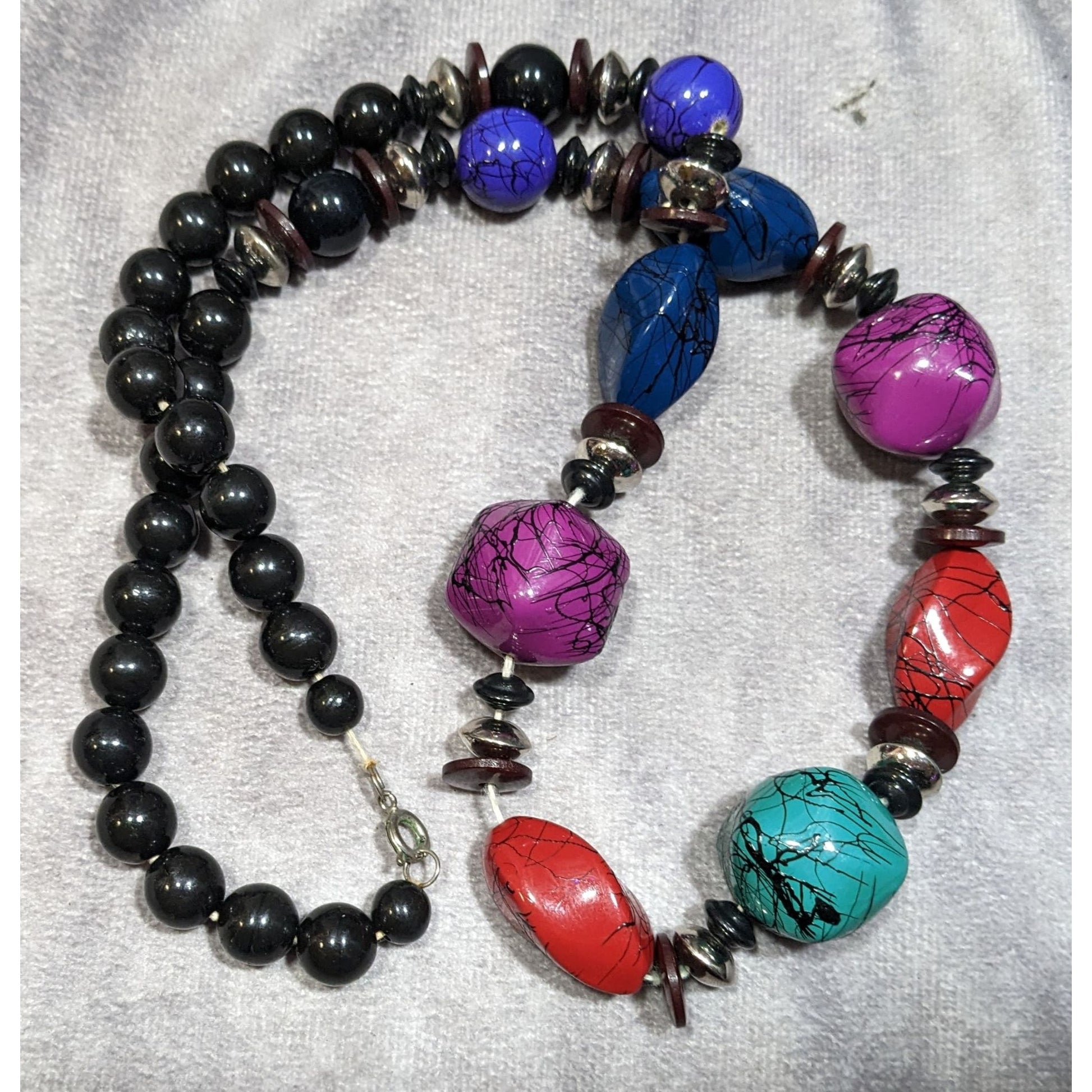 Vintage 90s Rainbow And Black Paint Splatter Beaded Necklace
