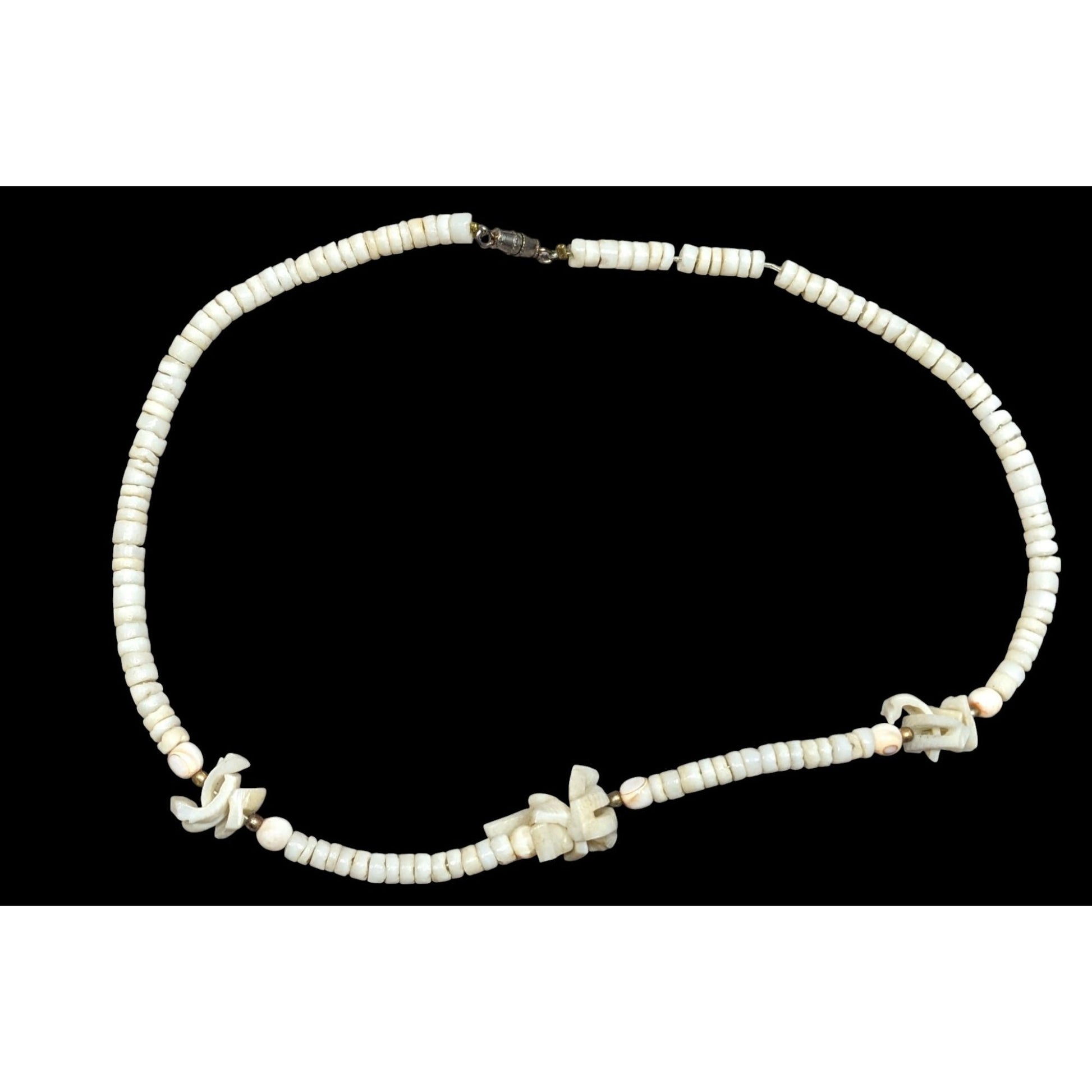 This vintage 90s necklace features elegant white shell chip beads, perfect for adding a timeless touch to any outfit. Its classic design complements casual and formal styles alike, making it a versatile accessory for any jewelry collection.