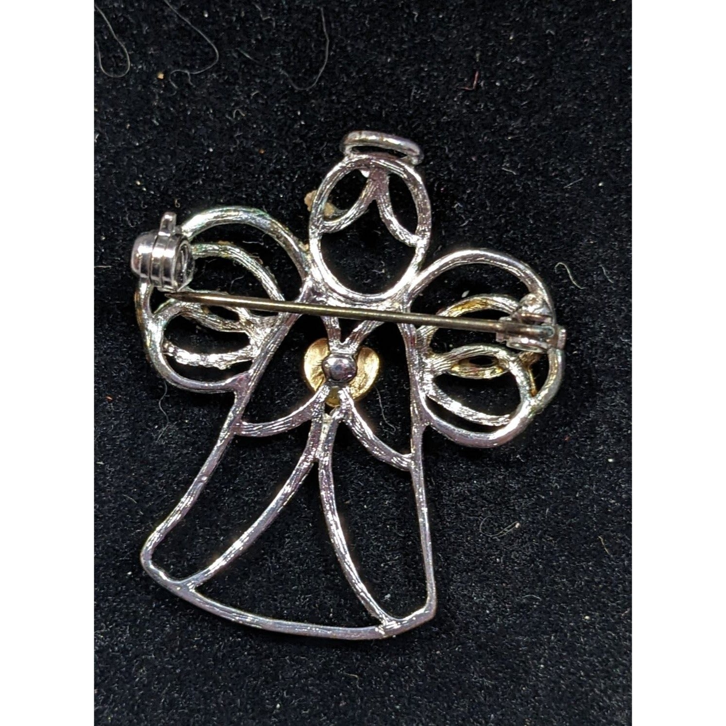 Add a touch of vintage charm with this metallic wire brooch featuring an angel holding a heart. Perfect for accessorizing any outfit, this timeless piece is a thoughtful gift for loved ones or a unique addition to your own collection.
