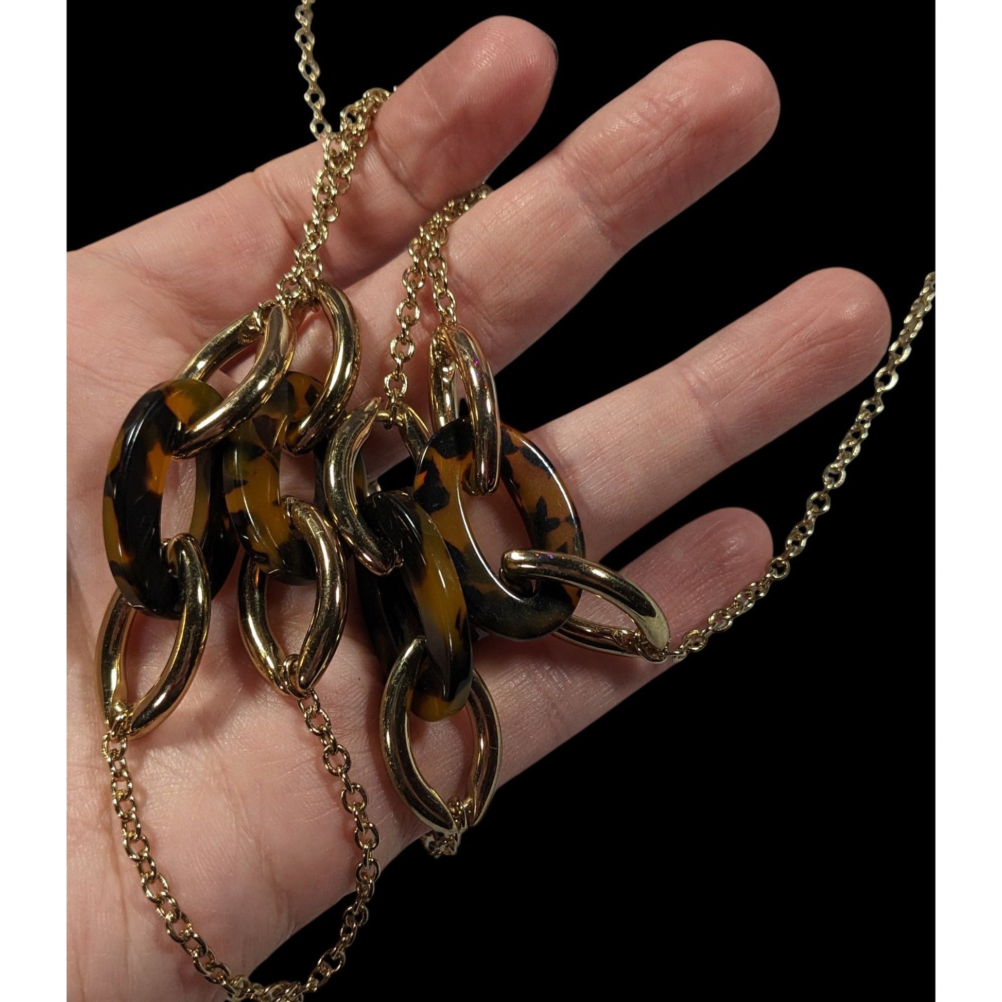 Elevate your style with this Retro Tortoise Silver Tone Station Link Necklace. Its timeless design and unique tortoiseshell accents make it perfect for any occasion.