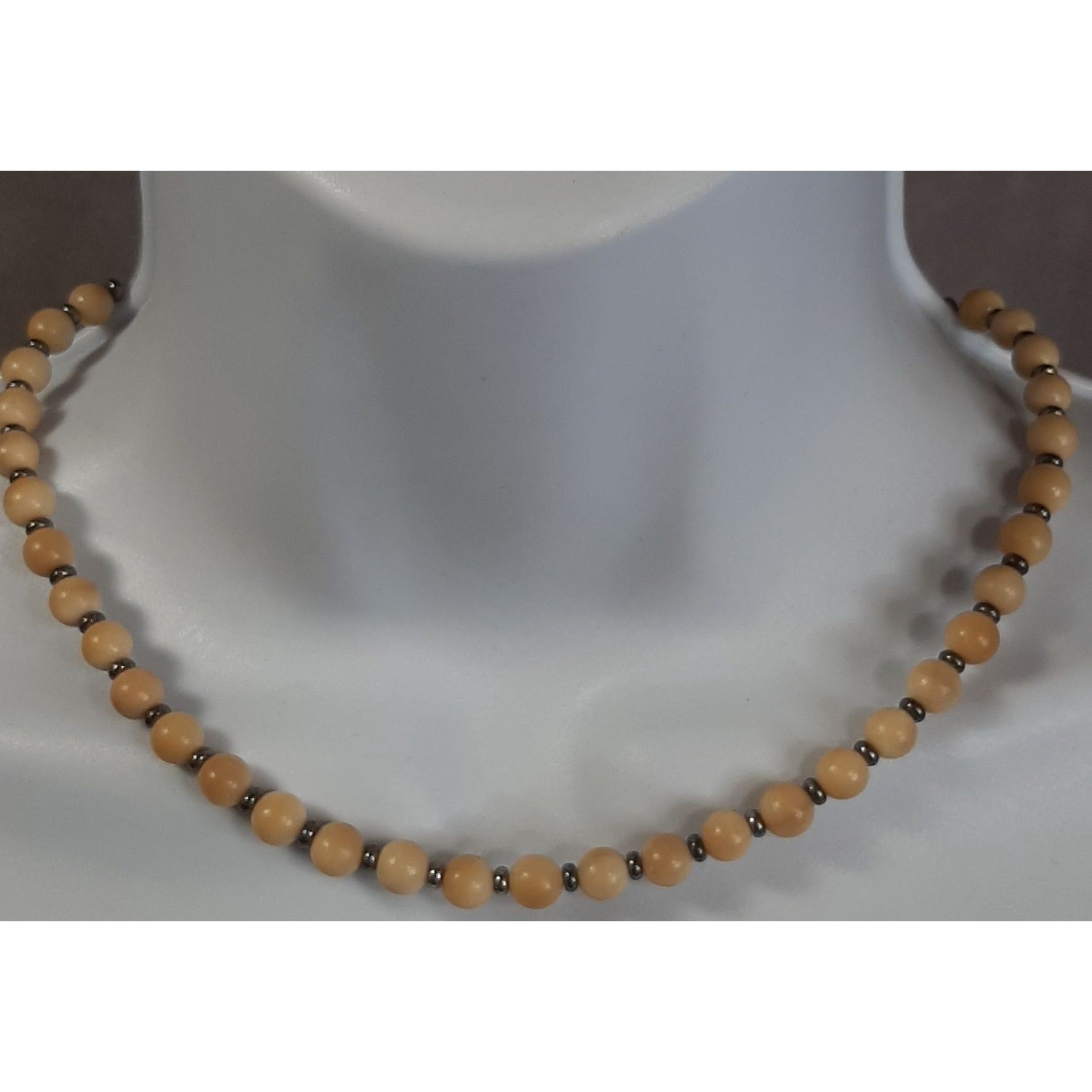 Vintage Beige Wood Beaded Necklace With Metal Spacers