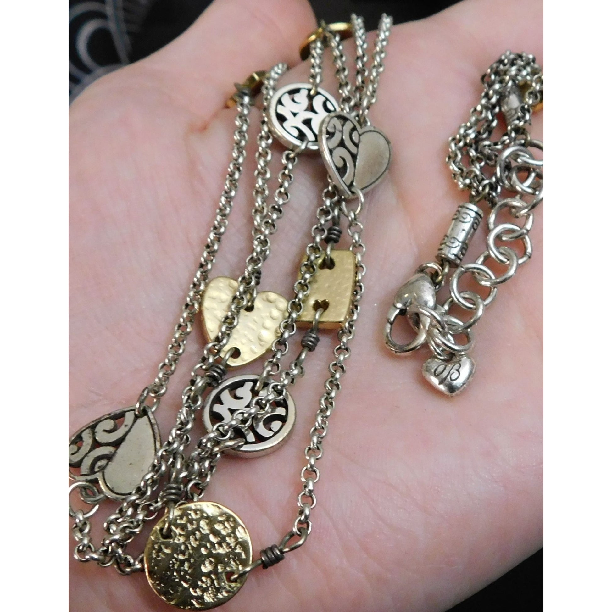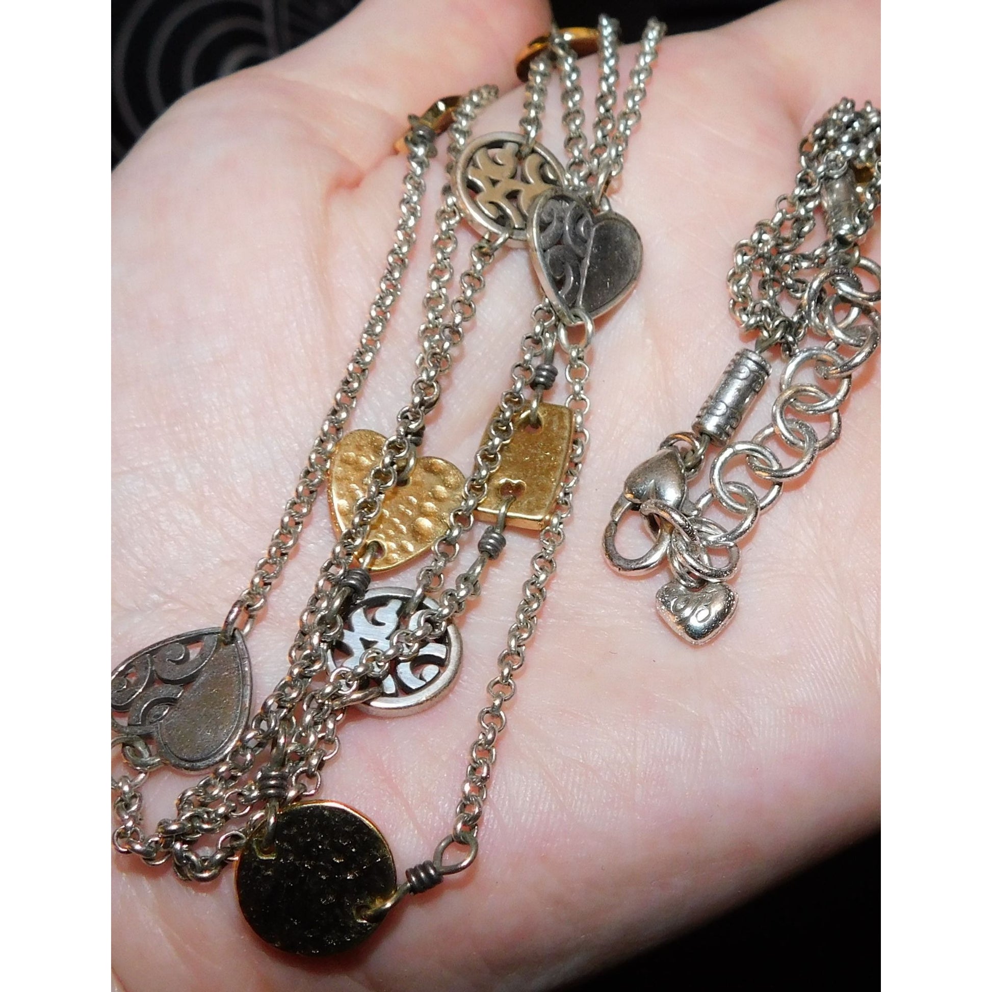 Elegant vintage Brighton necklace featuring layered multi-metallic charms. This unique piece blends classic and contemporary styles, perfect for any occasion.
