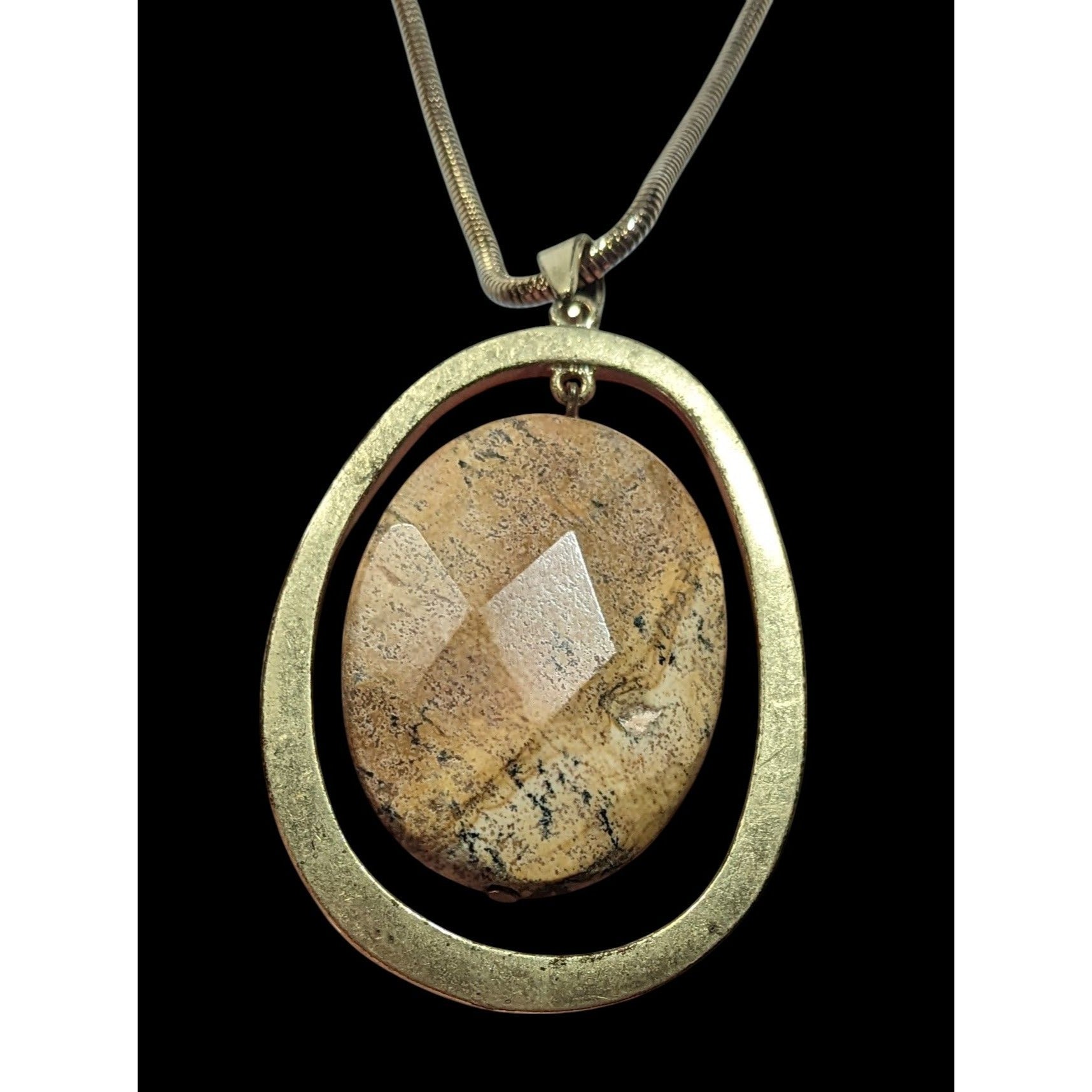 Vintage Brutalist Gold Tone Pendant Necklace With Faceted Stone Centerpiece