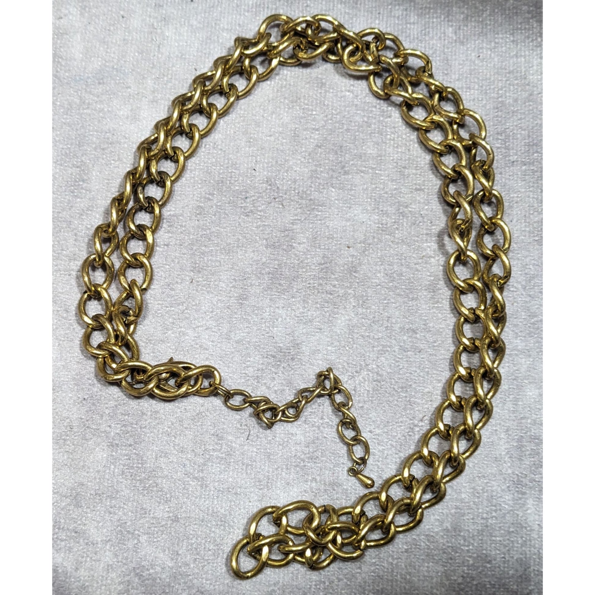 A timeless gold tone chain necklace perfect for adding a touch of elegance to any outfit. This vintage piece is versatile, making it ideal for both casual and formal occasions.