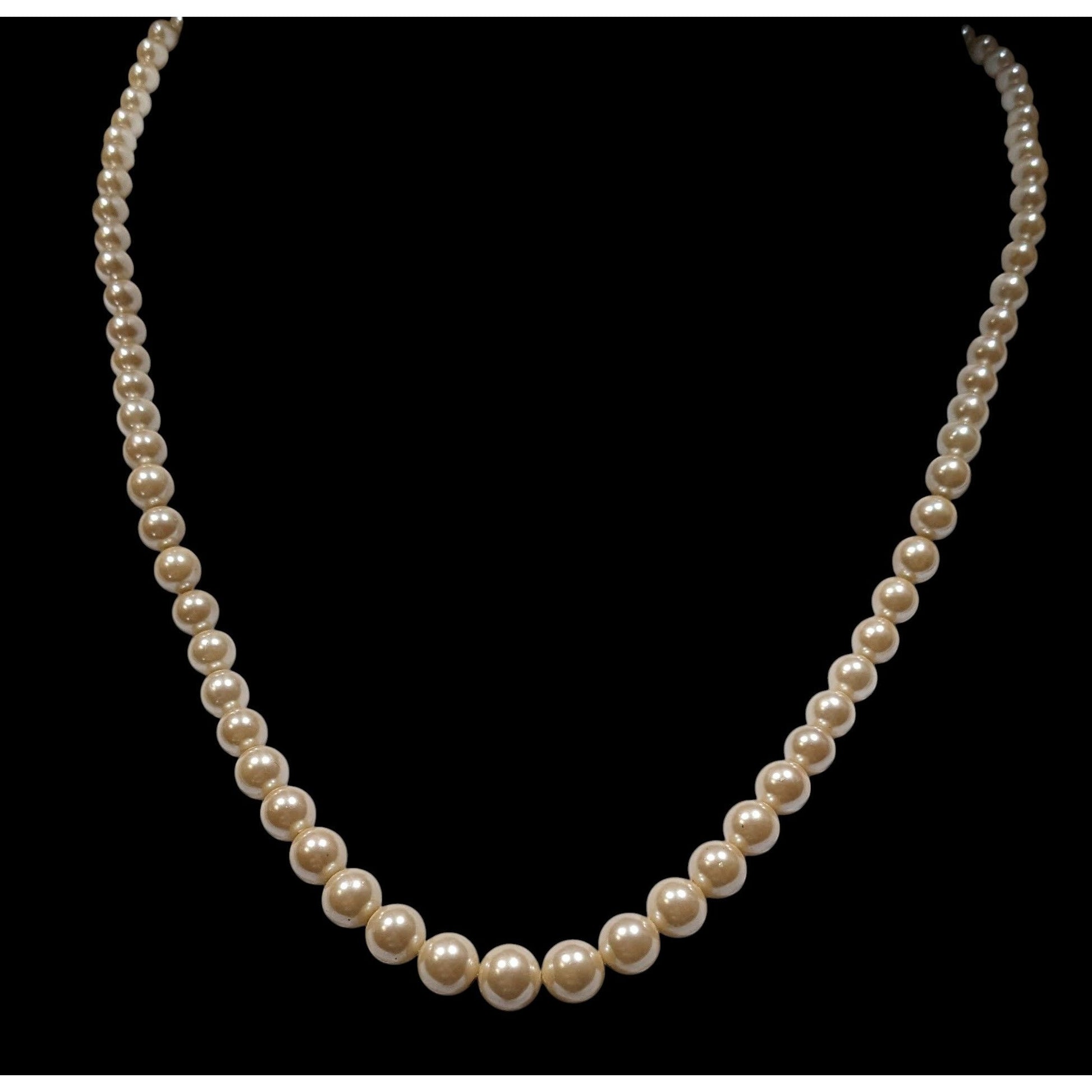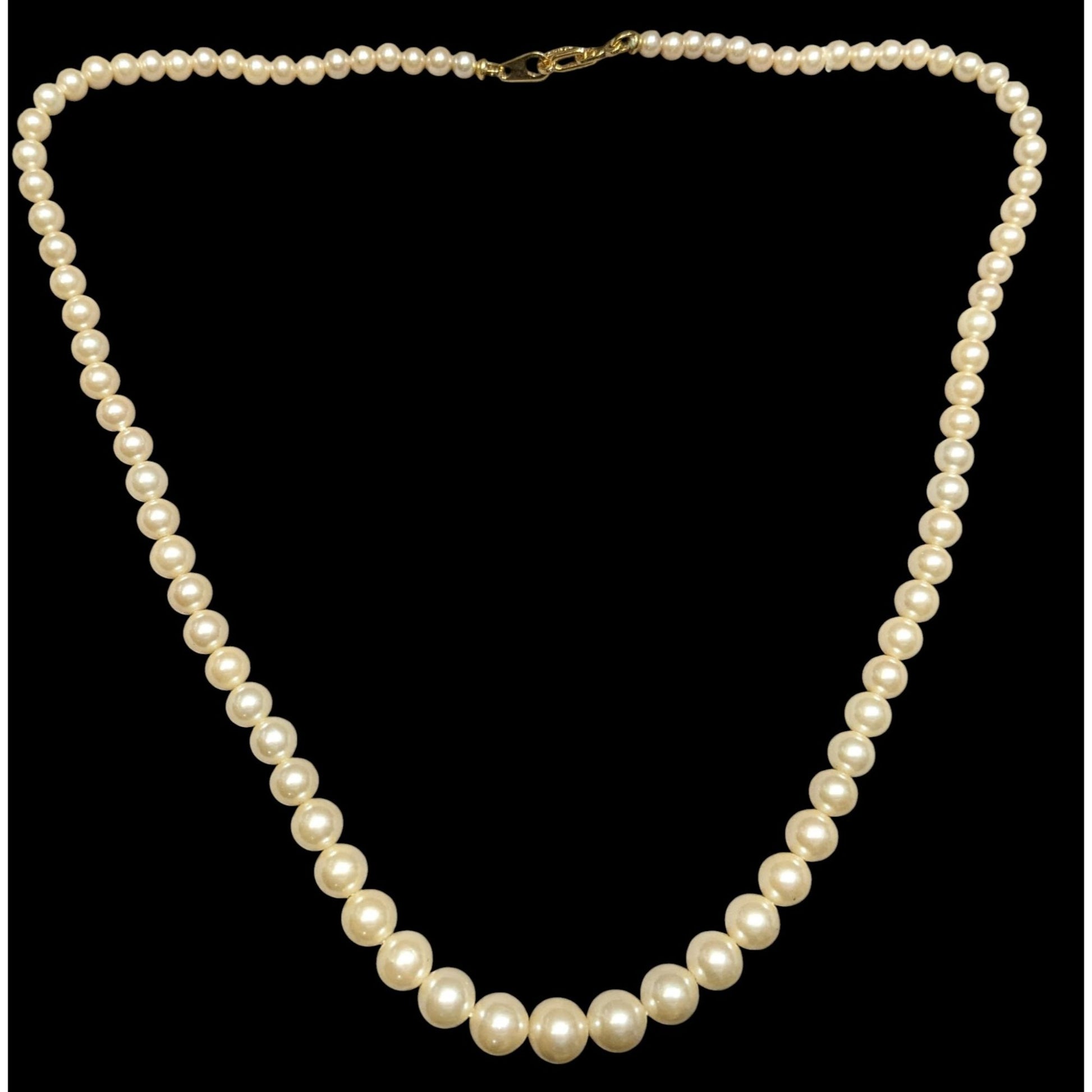 Each pearl in this classic strand tells a story of timeless elegance, with its soft cream hue reflecting subtle sophistication. The gold-tone clasp completes a design perfect for cherishing moments of grace and refinement.