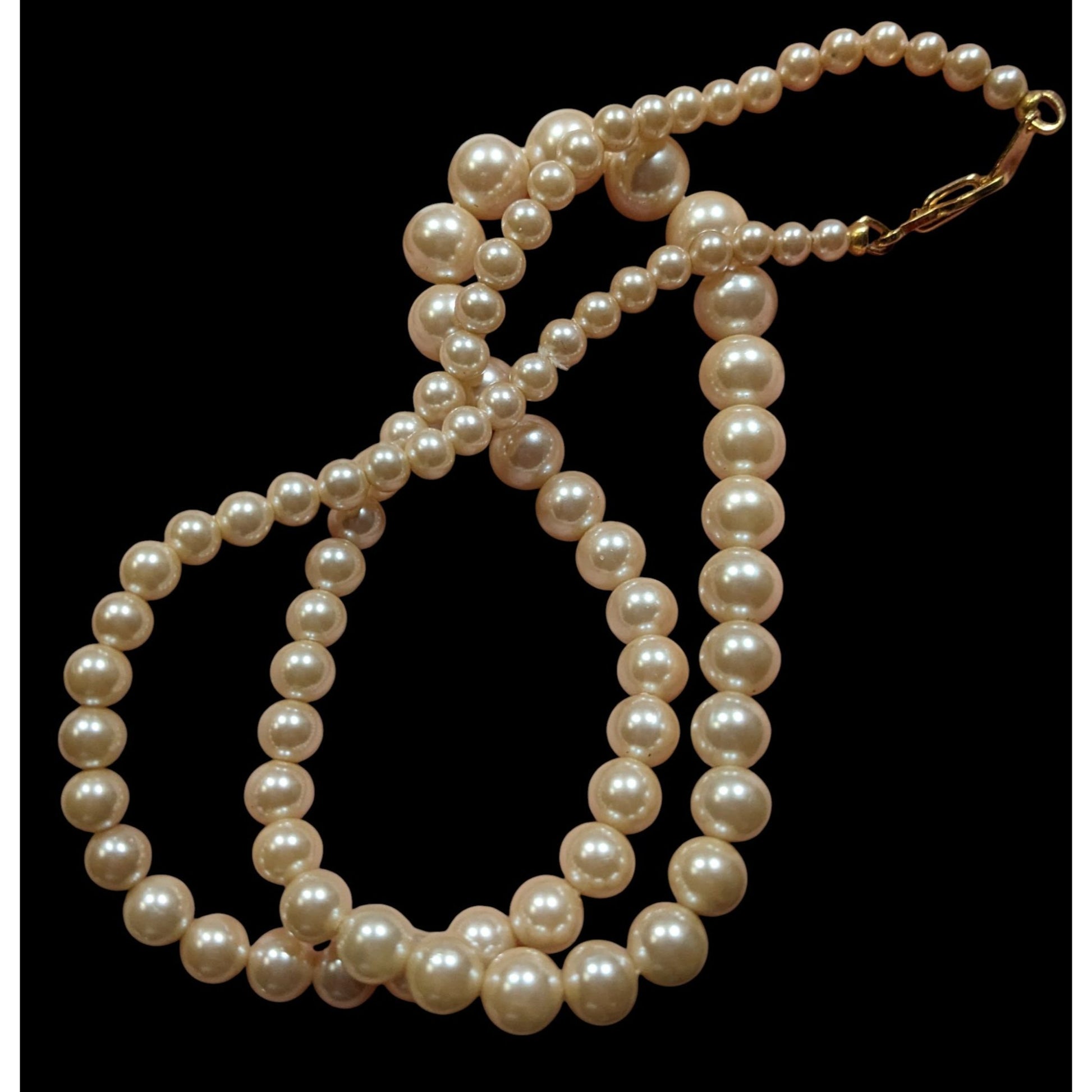 Vintage Cream Pearl Beaded Necklace With Gold-Tone Clasp