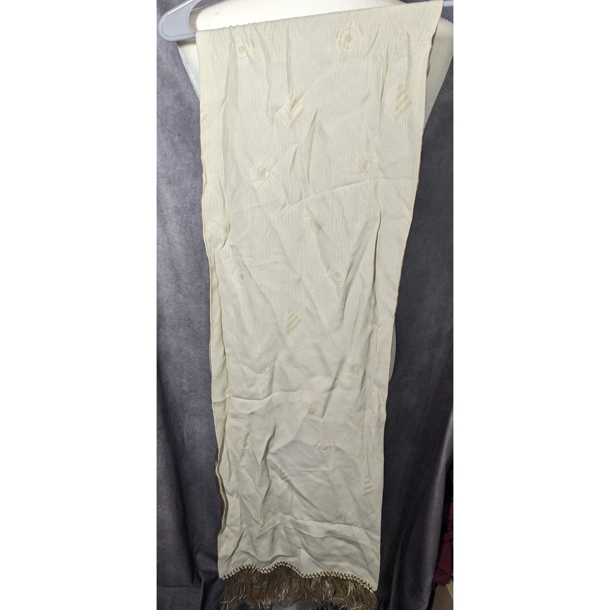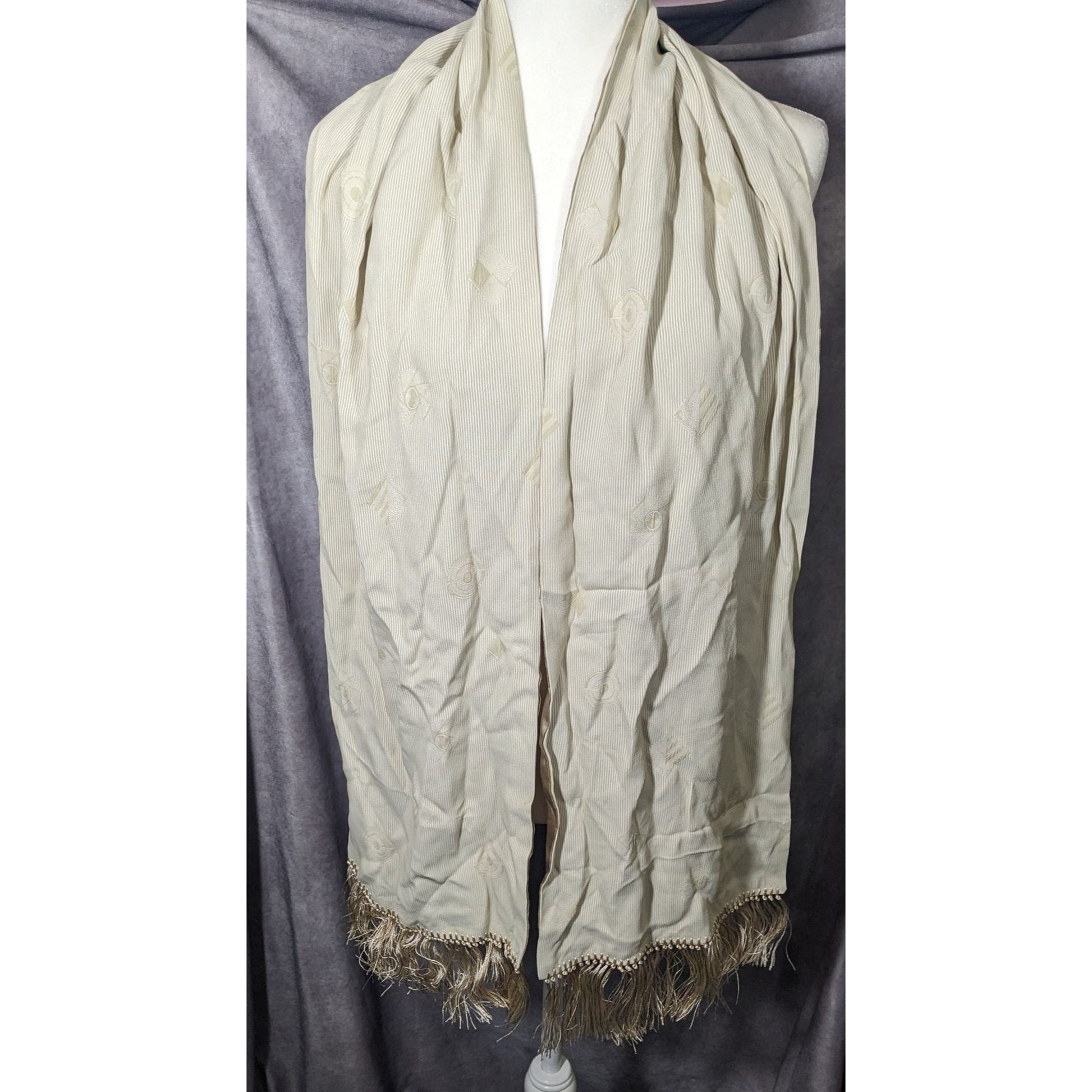 Vintage Donna Livingston Silk Beige Geometric Textured Scarf With Fringe