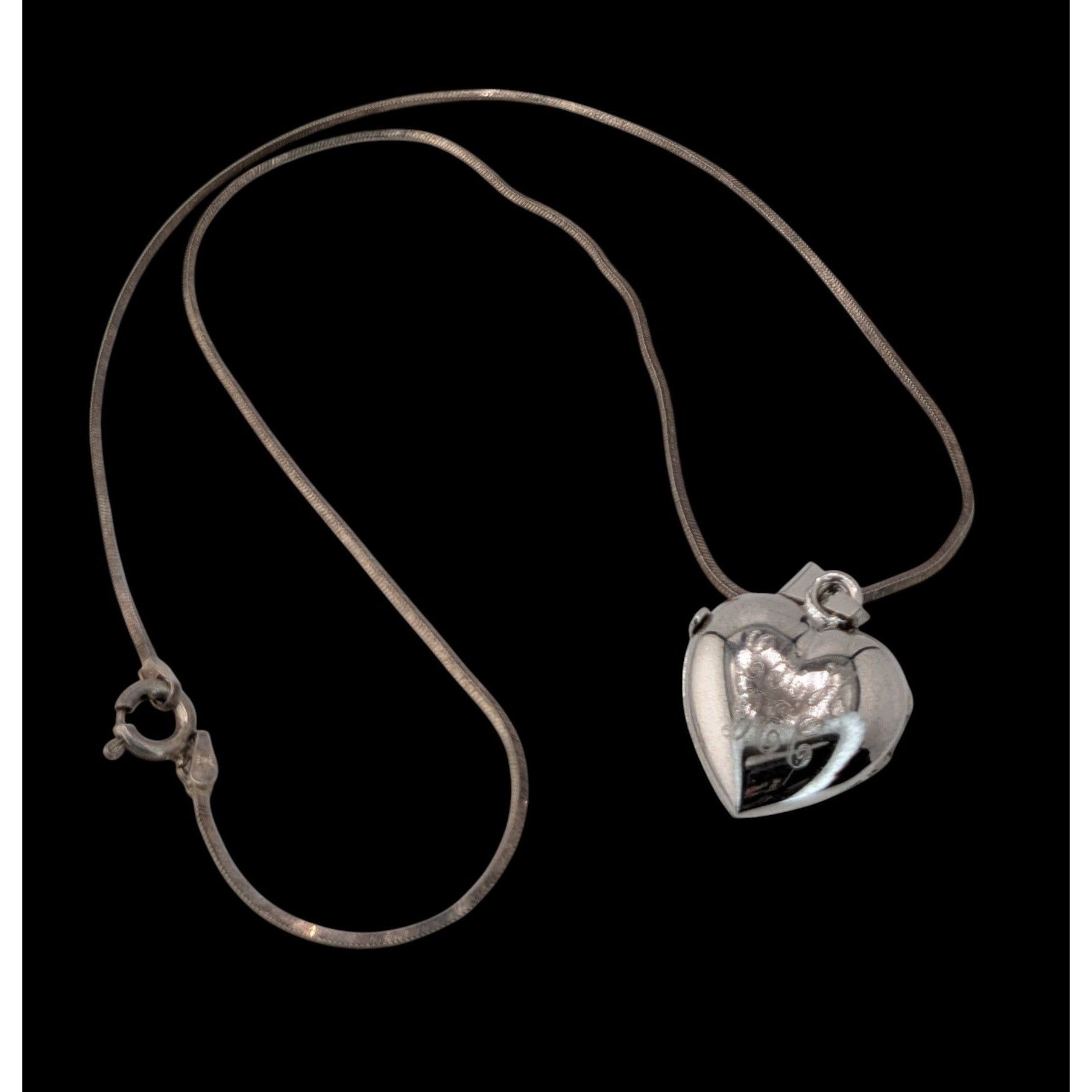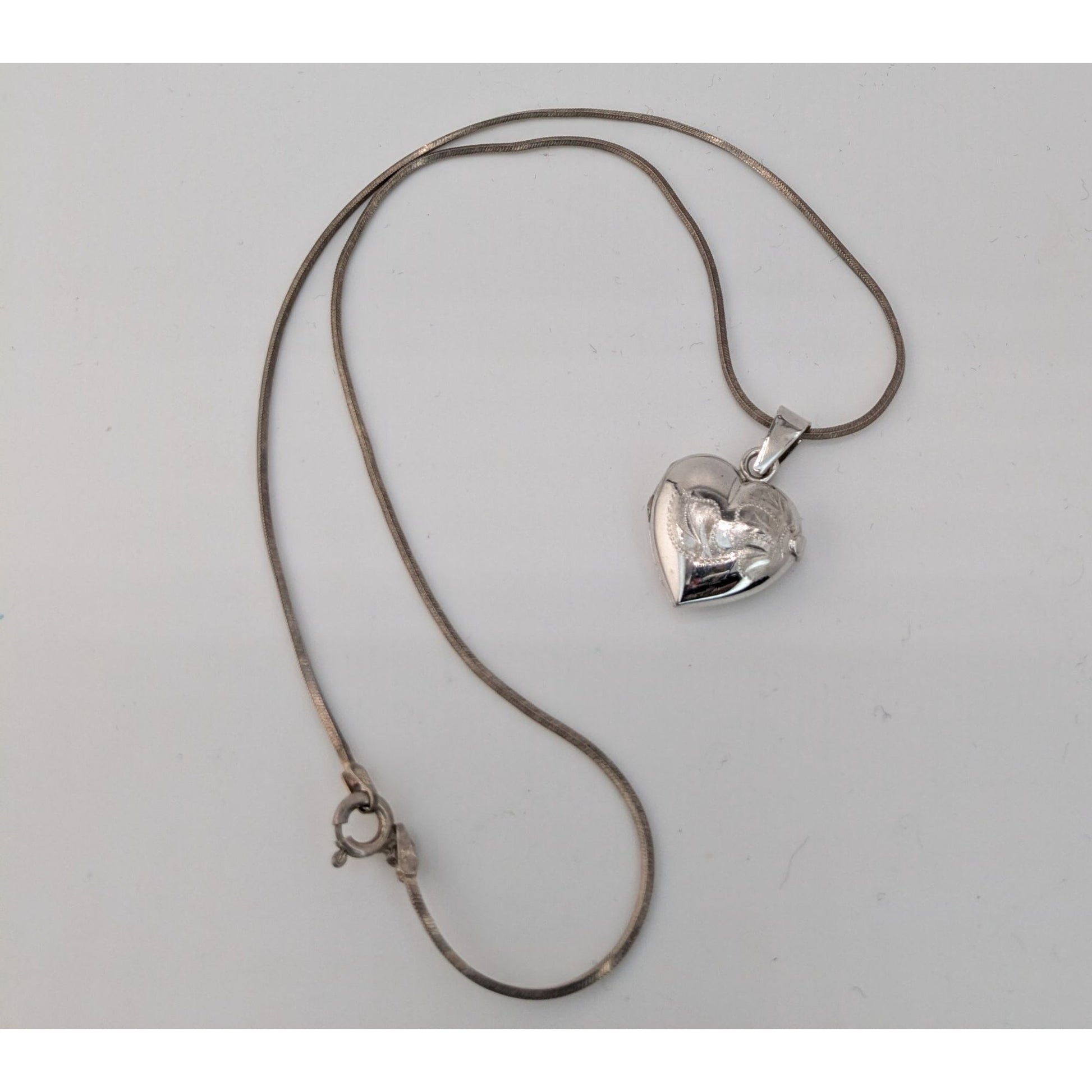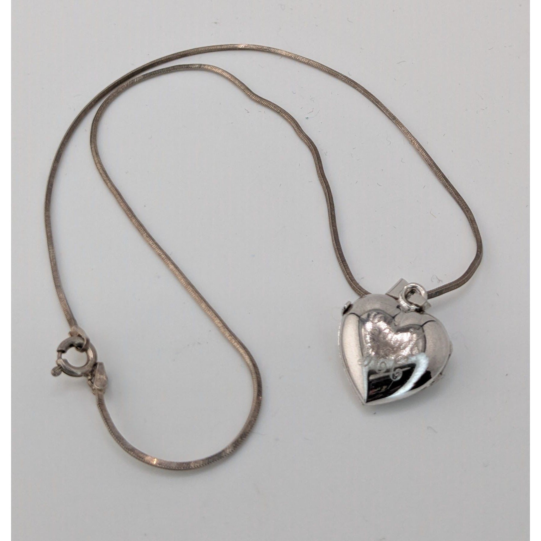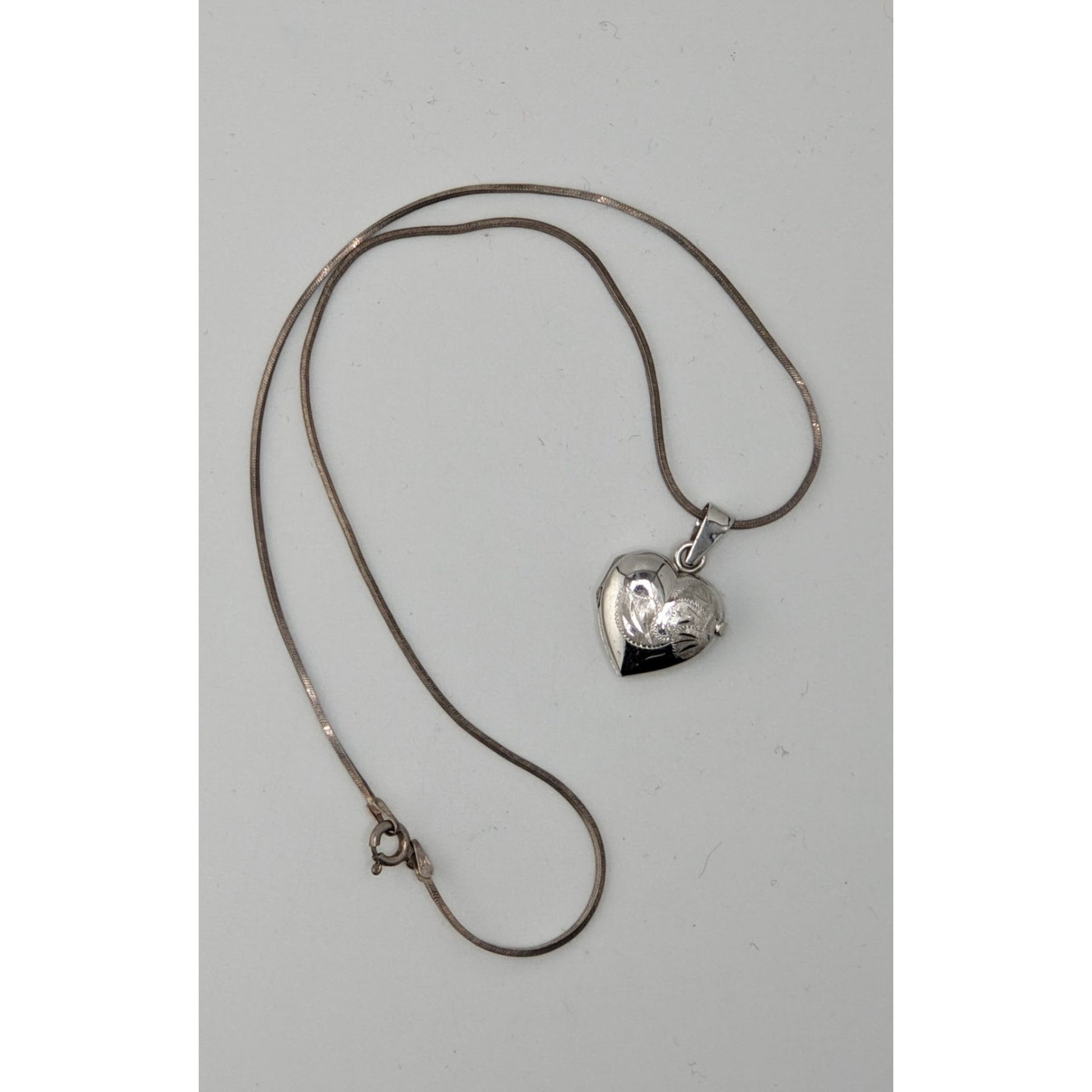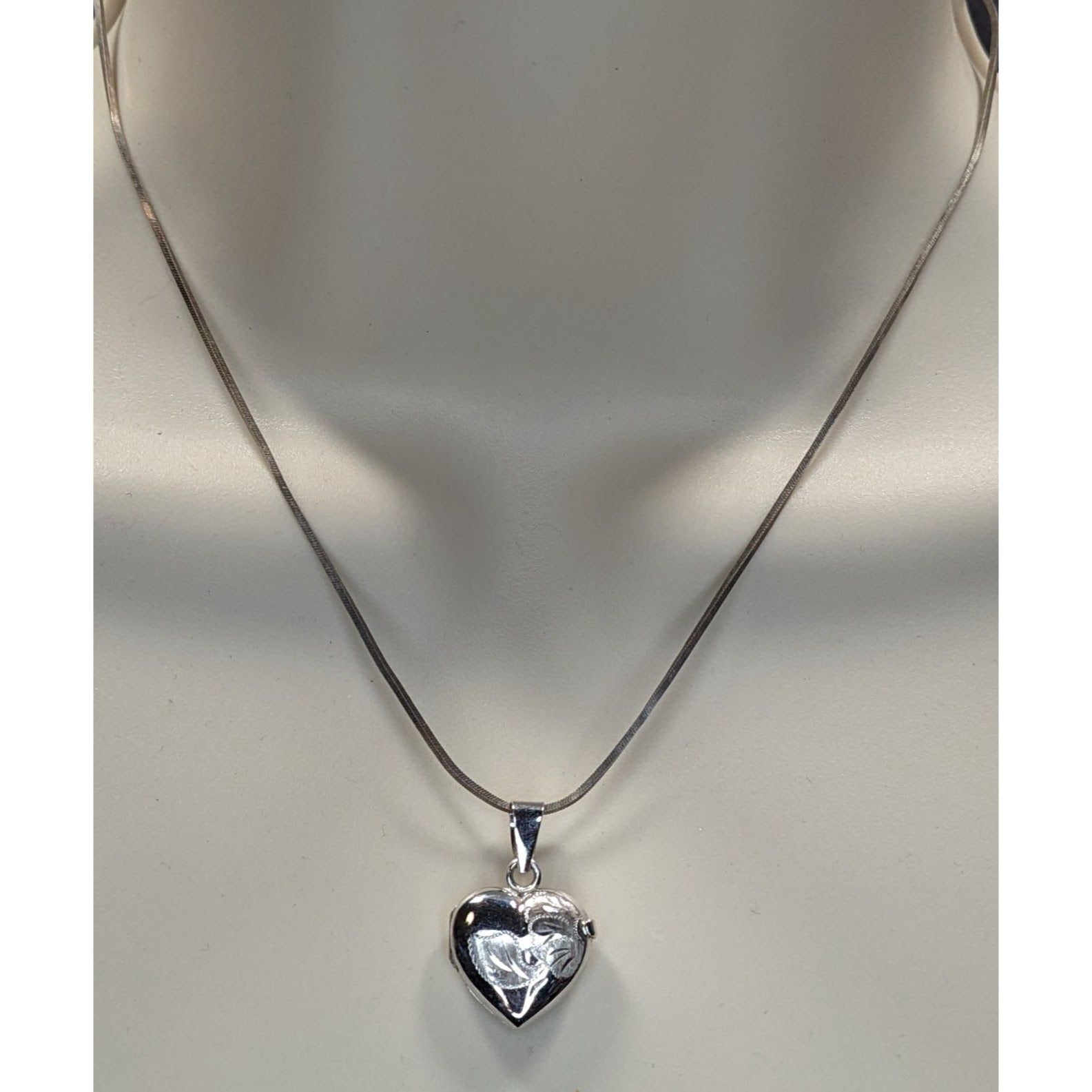 Vintage Engraved Sterling Silver Heart Locket Necklace