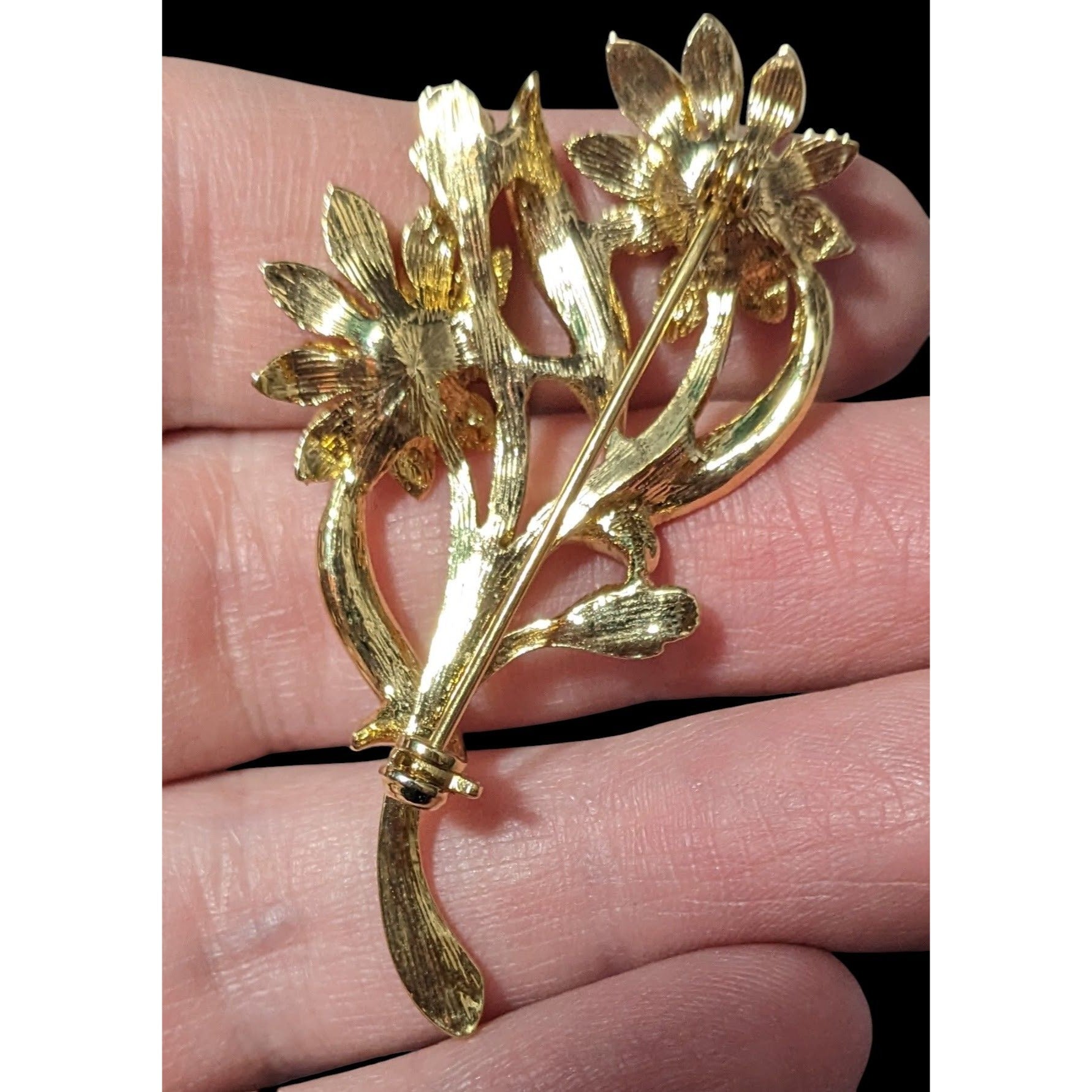 Vintage Floral Silver And Gold Tone Rhinestone Brooch